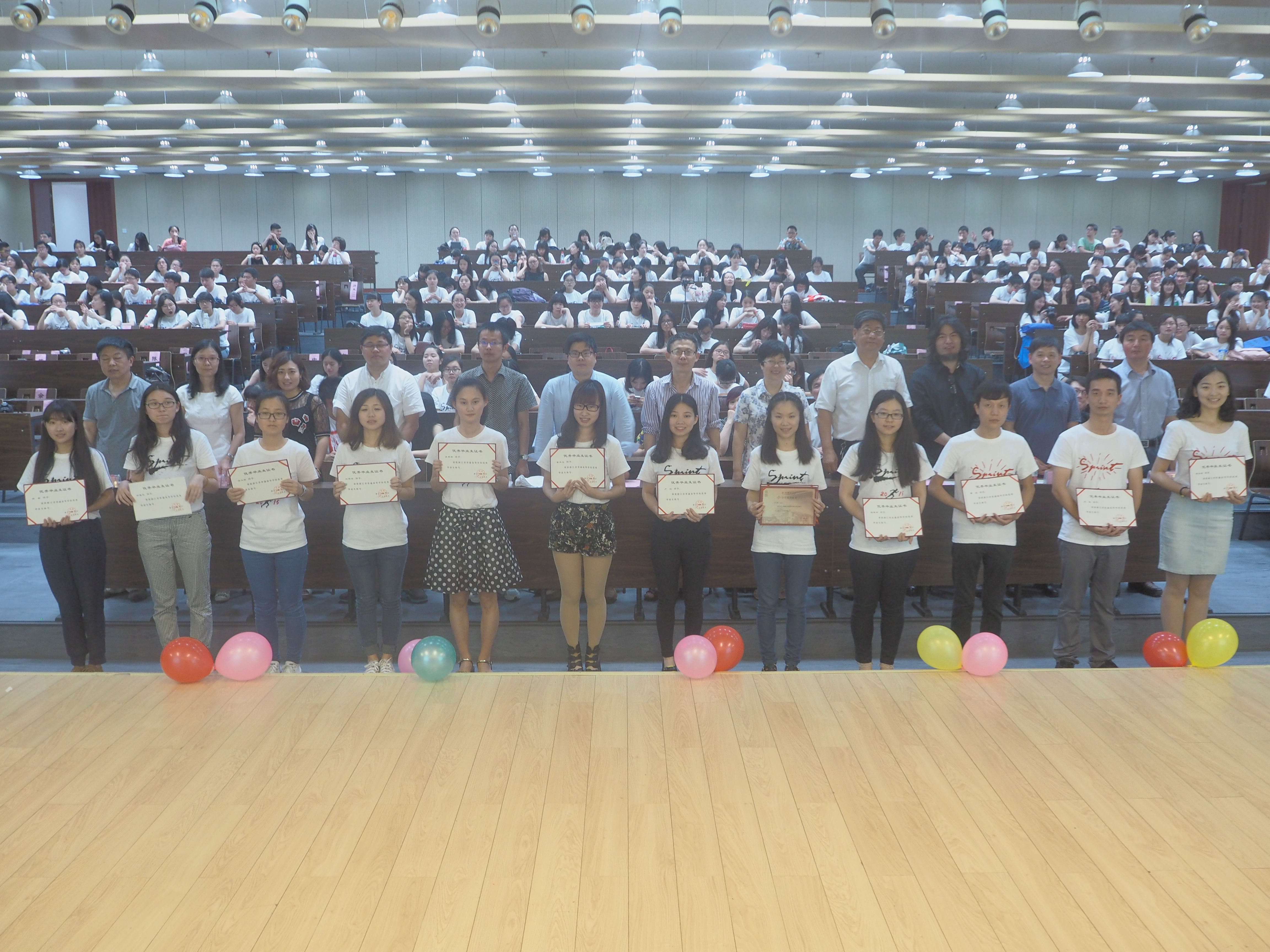 杭师见证了我们的努力,记载了我们的辉煌。no视频 党委书记吴兴农宣读表彰决定,宣布了省、校、院级优秀毕业生,并颁发证书,共享优秀人文学子精彩的瞬间。走出校园,我们与更多人相遇,但校园里的日日夜夜却是我们的独家记忆,难以忘怀。接着举行了校友联系人的受聘仪式,由各班班主任颁发证书。接下来毕业生代表向学校献礼,礼物是一面正身镜。一撇一捺可树人,一铜一镜正衣冠,这面镜子是校友对人文后辈的期望。然后,家长们接受了现场的采访,远道而来的家长,亲眼见证了孩子们毕业的瞬间。