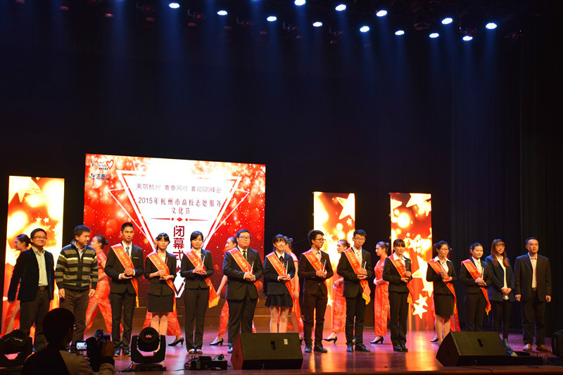 11月16日,第四届在杭高校志愿服务文化节闭幕式在杭州电子科技大学下沙校区举行,闭幕式上公布了2015年“最美大学生志愿者”评选结果,no视频 中文123班黄钰婕、中文122班杨燚在此次文化节上荣获2015年“最美大学生志愿者”称号。