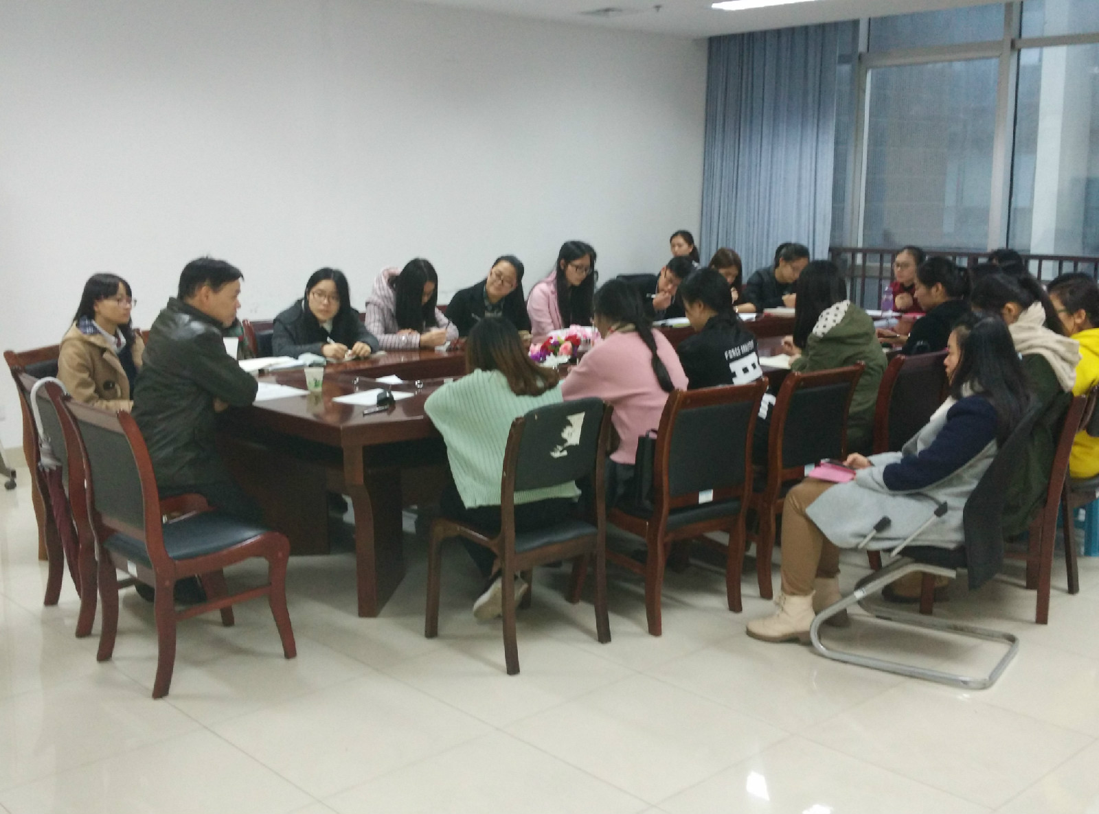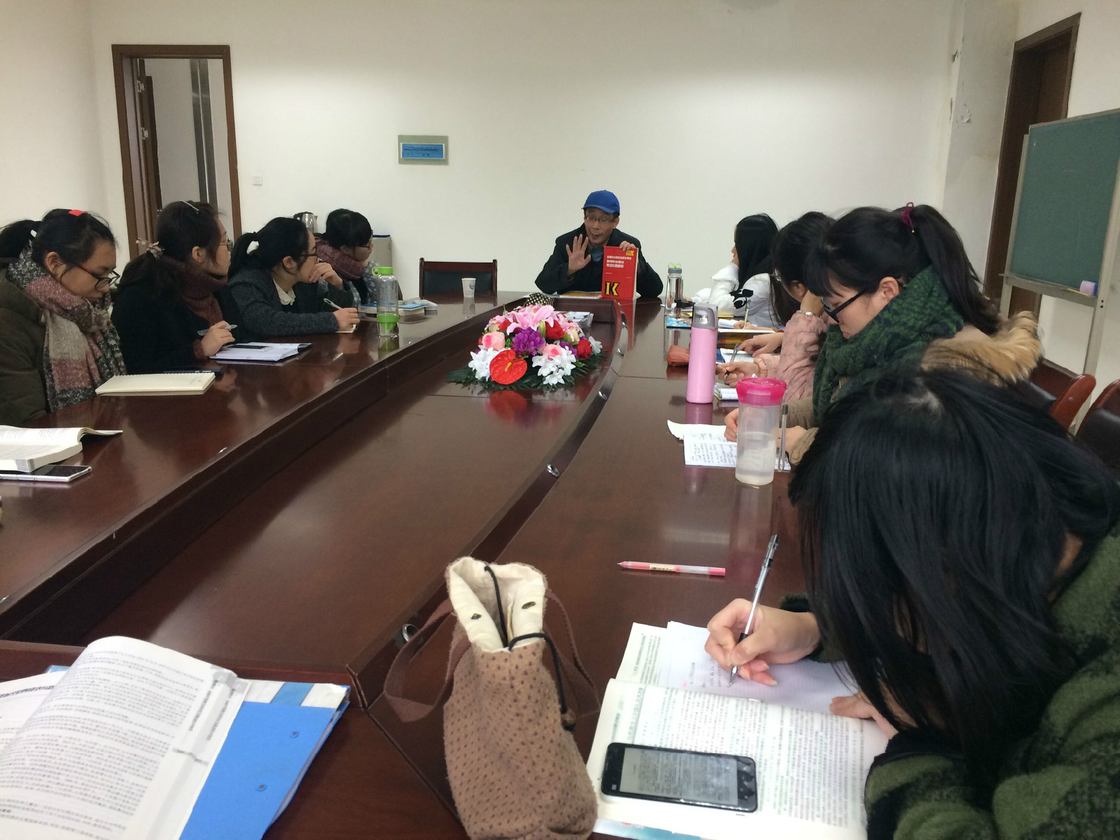 1125下午,张老师与考研学生进行座谈,他带领同学们对基本知识点进行详细梳理,并嘱咐大家在考研复习中要注意提纲挈领,主动研究重点、难点。之后,同学们就自己在考研中遇到的问题向老师求教,张老师均一一作答。