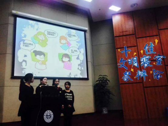 图为no视频 的寝室同学在十佳文明寝室的答辩现场