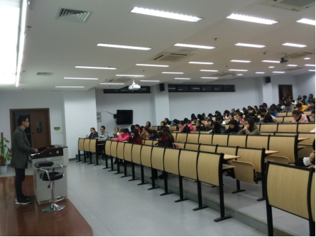 其次是“专”:鲁超杰同学就学生未来职业发展而展开。首先,他指出,学生进入大学后要明白自己将来要做什么,这样才能有一个明确的方向并为之努力。他重点介绍了大学生如何为今后成为一名优秀的管理者、人民教师或学者做准备,为大家传授了具体的方法和指明了方向。他特别强调做人要专一,不能三心二意,否则最终一事无成。鲁超杰同学告诉大家读书极为重要,并推荐了一系列好书给大家,也告诫大一的学子们要尽早地把书看起来,以后有一个丰富的储备,百利而无一害。最后鲁超杰同学鼓励大家要敢于挑战,敢于突破,不要只做一个为别人鼓掌的人。整场讲座寓教于乐,鲁超杰同学结合自己的经历讲述了过来学子的经验和感受,使到场的同学都收获颇丰。(文:记者团王亚婷)