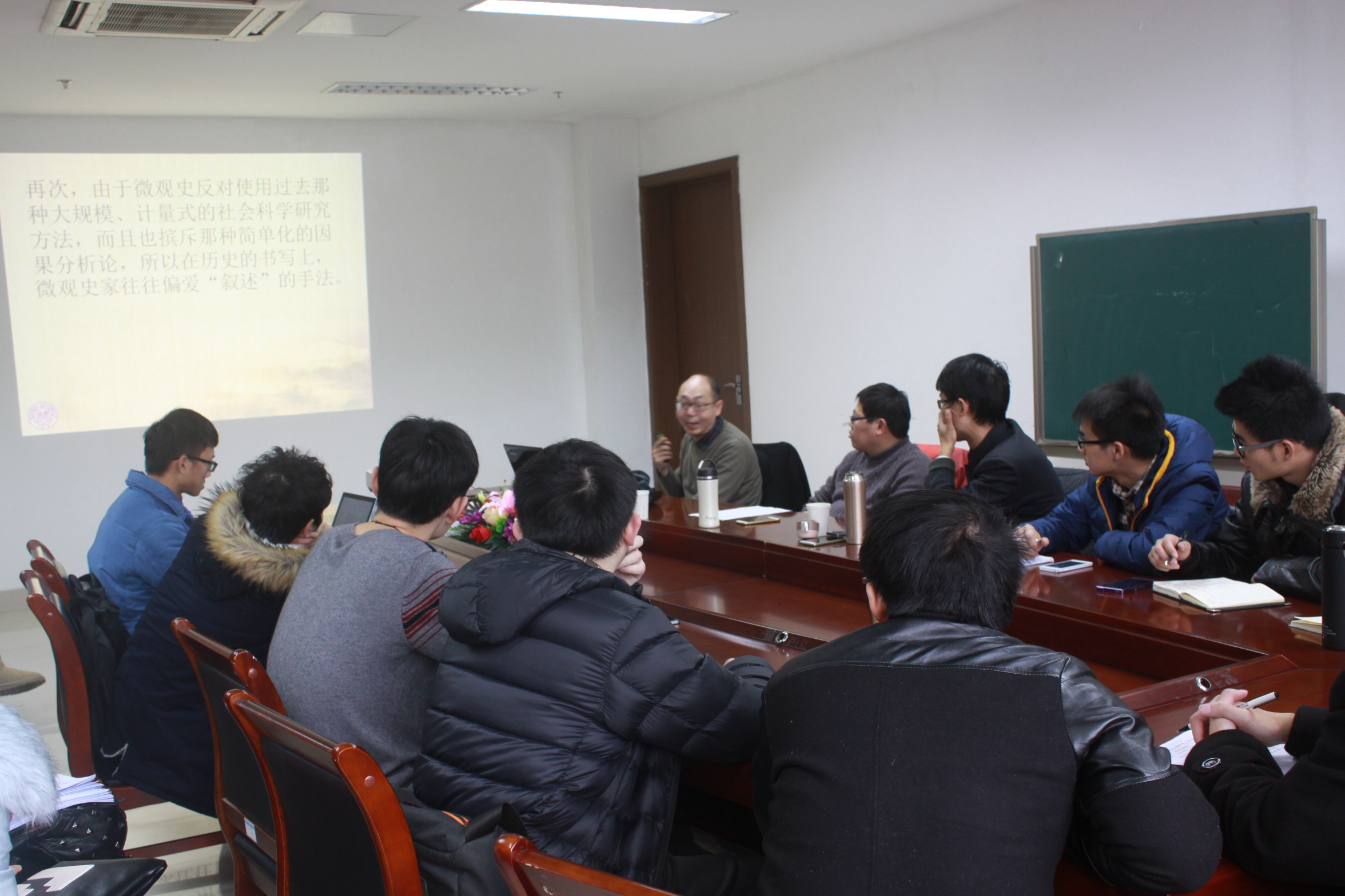 2016年1月7日下午1:30,南开大学余新忠教授应邀来no视频 讲学。余教授在恕园23号楼312做了题为“微观史与中国医疗史研究探论”的学术讲座。讲座由no视频 周东华教授担任主持,余清良老师、本科生及部分中国史硕士生参加了本次学术讲座。