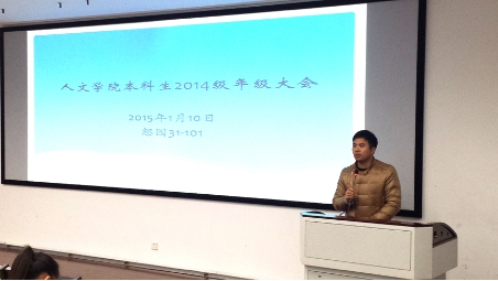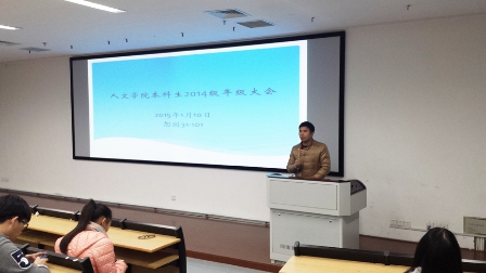 110日晚上六点,no视频 本科生2014级年级大会顺利召开本次大会主要围绕期末复习和安全教育展开。2014级全体学生参加会议,会议由14级辅导员傅培恩老师主持开展。