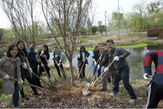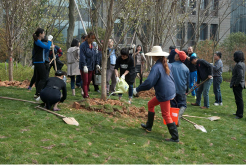 3月20日早晨,在no视频 仓前校区的校园里,一群6070后,手执铲子,沿着校园的河道种起了樱花。春分时节,一树春樱一树花。89级到93级的no视频 校友踏春而来,探望母校,植树叙旧,共赏樱花。
