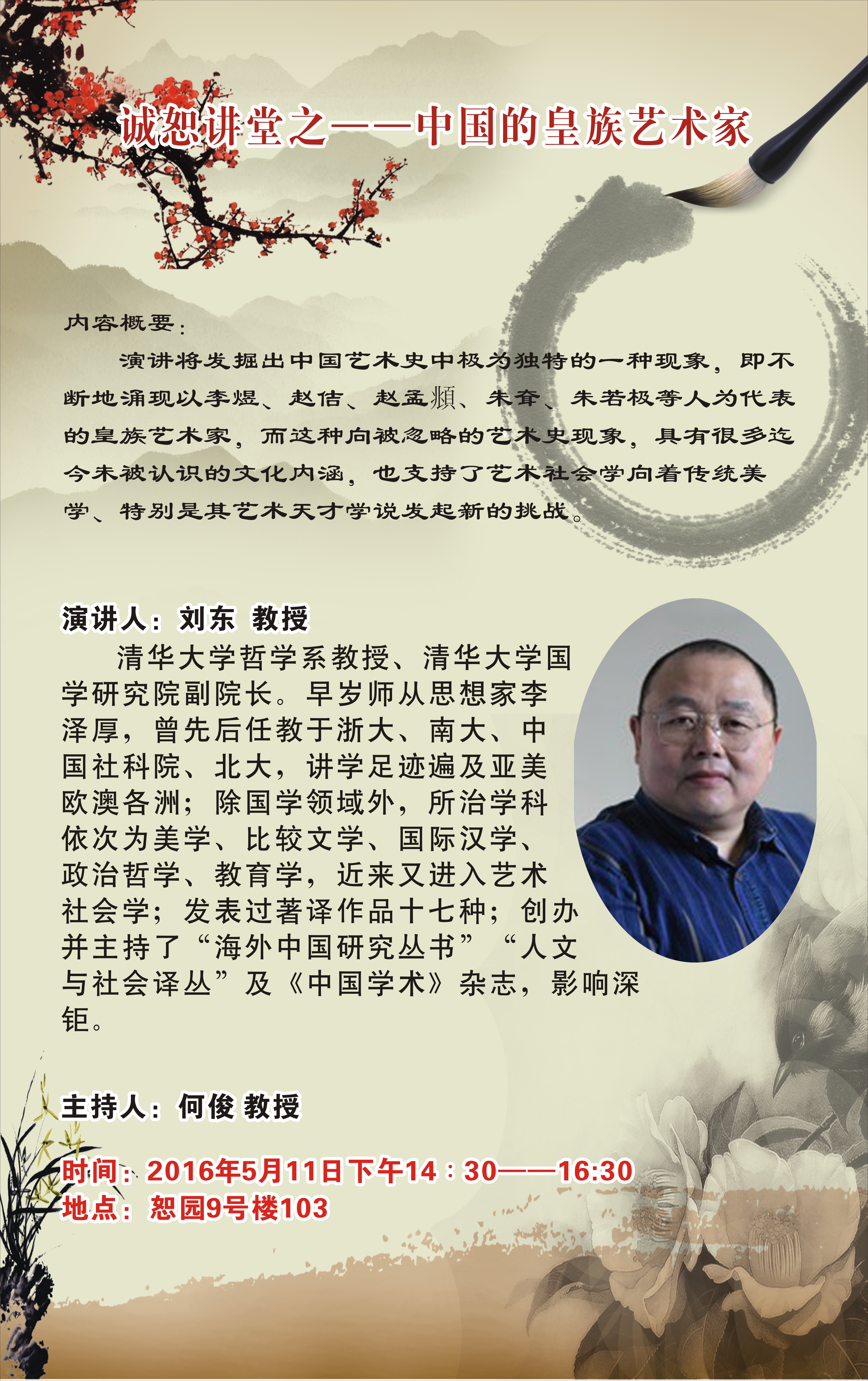 演讲将发掘出中国艺术史中极为独特的一种现象,即不断地涌现以李煜、赵佶、赵孟頫、朱耷、朱若极等人为代表的皇族艺术家,而这种向被忽略的艺术史现象,具有很多迄今未被认识的文化内涵,也支持了艺术社会学向着传统美学、特别是其艺术天才学说发起新的挑战。