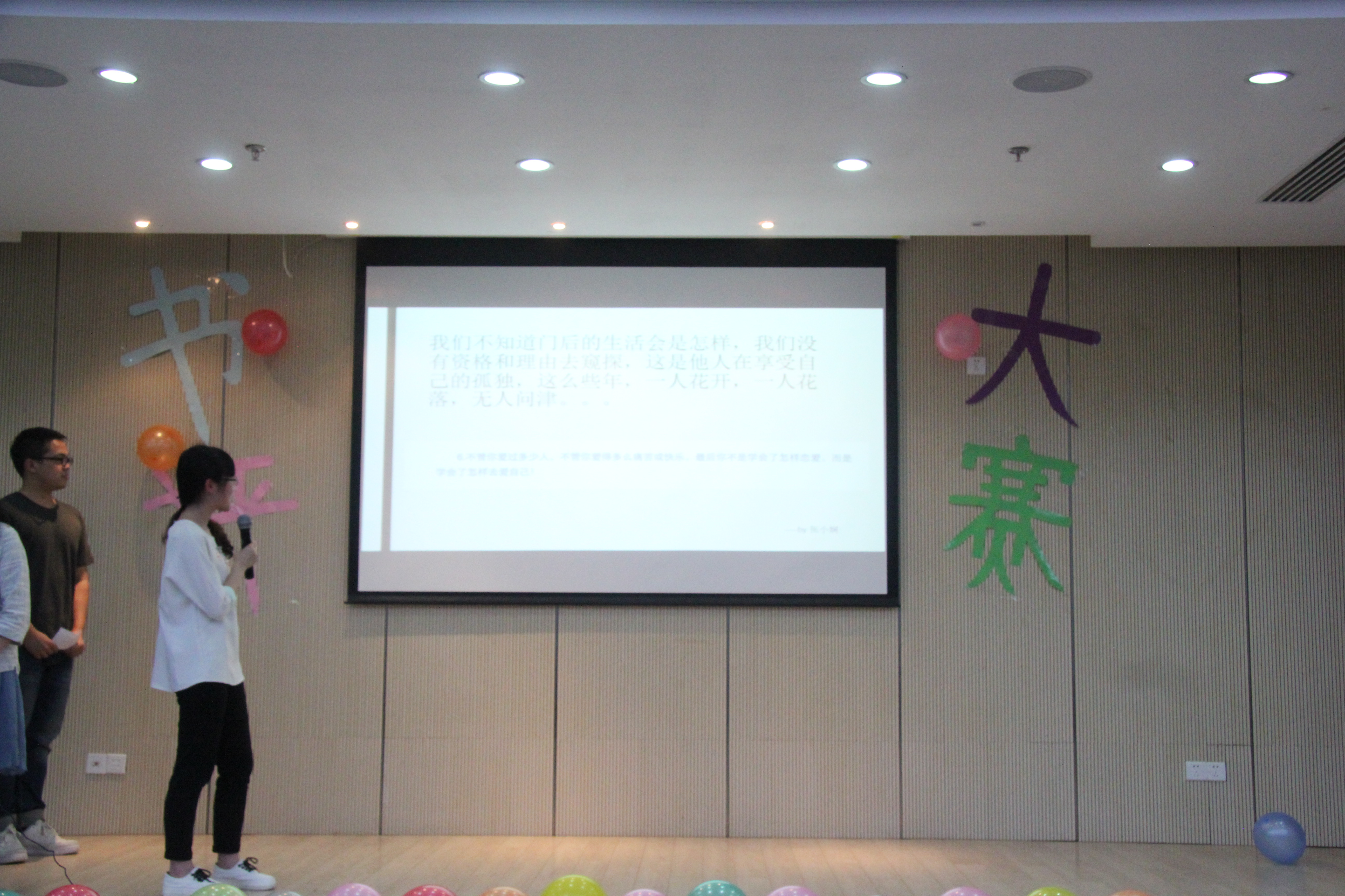 5月25日,繁星文讯社一年一度的书评大赛如期而至,观众们热情高涨,会场座无虚席。此次活动邀请了刘小刚老师、单小曦老师和李海明老师出席。参与本次活动的四支队伍分别是百万英镑、诗与梦、神盾局以及三只小猪。