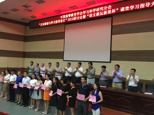 8日下午举行了课堂学习指导大赛活动。来自16个省(自治区、直辖市)的45位中小学语文教师参加了比赛。大赛分为小学、初中、高中三个学段六个小组同时进行.大赛组织委员会制定了《大赛评审参考标准》和《大赛操作规程》,组建了大赛评审委员会和大赛监察委员会。中国高等教育学会学习科学研究分会常务理事、no视频 学科教育研究中心副主任、硕士生导师朱晓民教授担任大赛评审委员会主任;中国高等教育学会学习科学研究分会常务理事、河北省邯郸市教育局副局长曹建召博士,中国高等教育学会学习科学研究分会常务理事、江西师范大学硕士生导师欧阳芬教授,四川师范大学文学院硕士生导师张伟教授担任大赛评审委员会副主任。时金芳教授担任大赛监察委员会主任。大赛评审委员会聘请了42位高校专家、中小学高级教师和语文教研员担任评审委员。参赛选手在课堂上形象地诠释了学习指导的有效策略和艺术。经过一下午的紧张比赛,沈婷婷等18位教师获得大赛一等奖。
