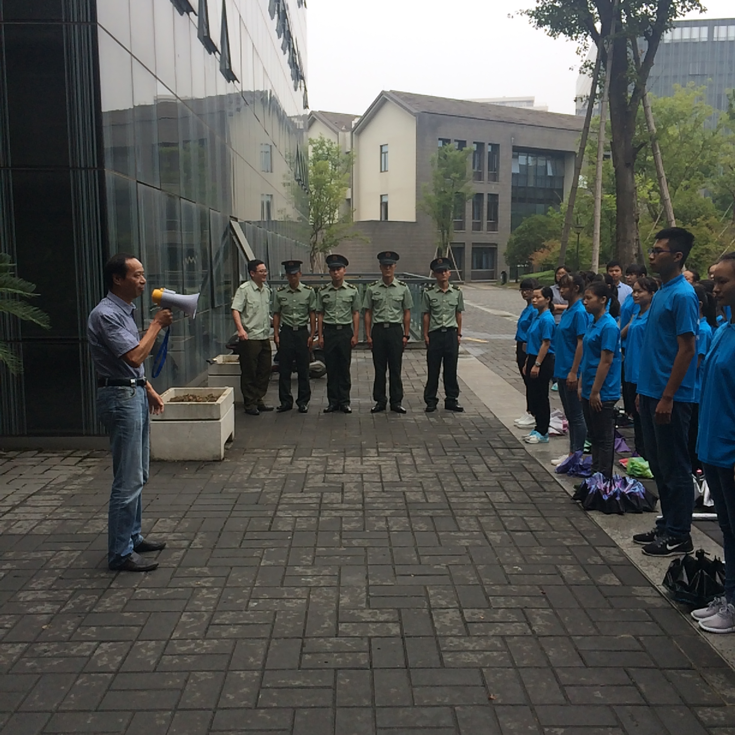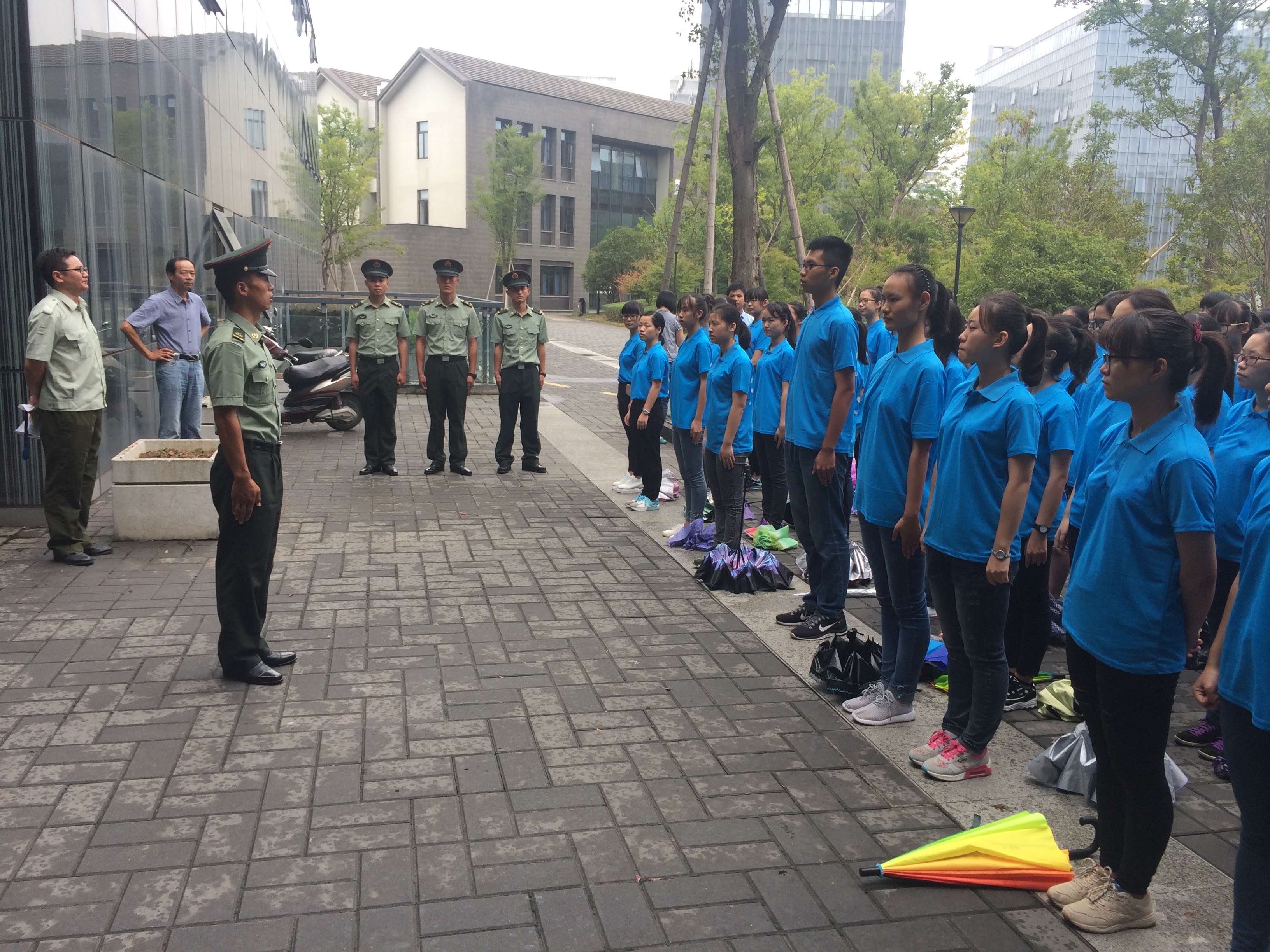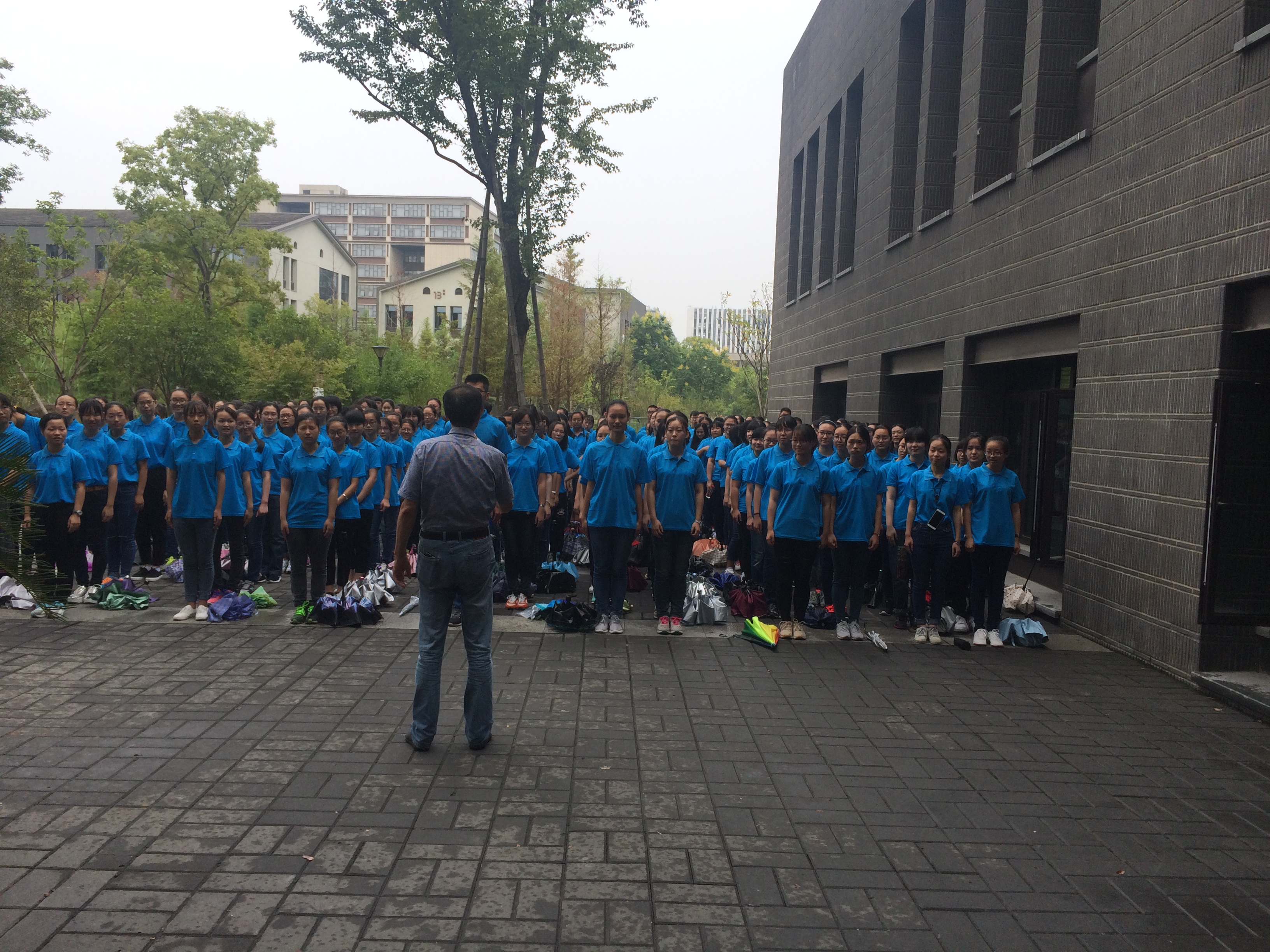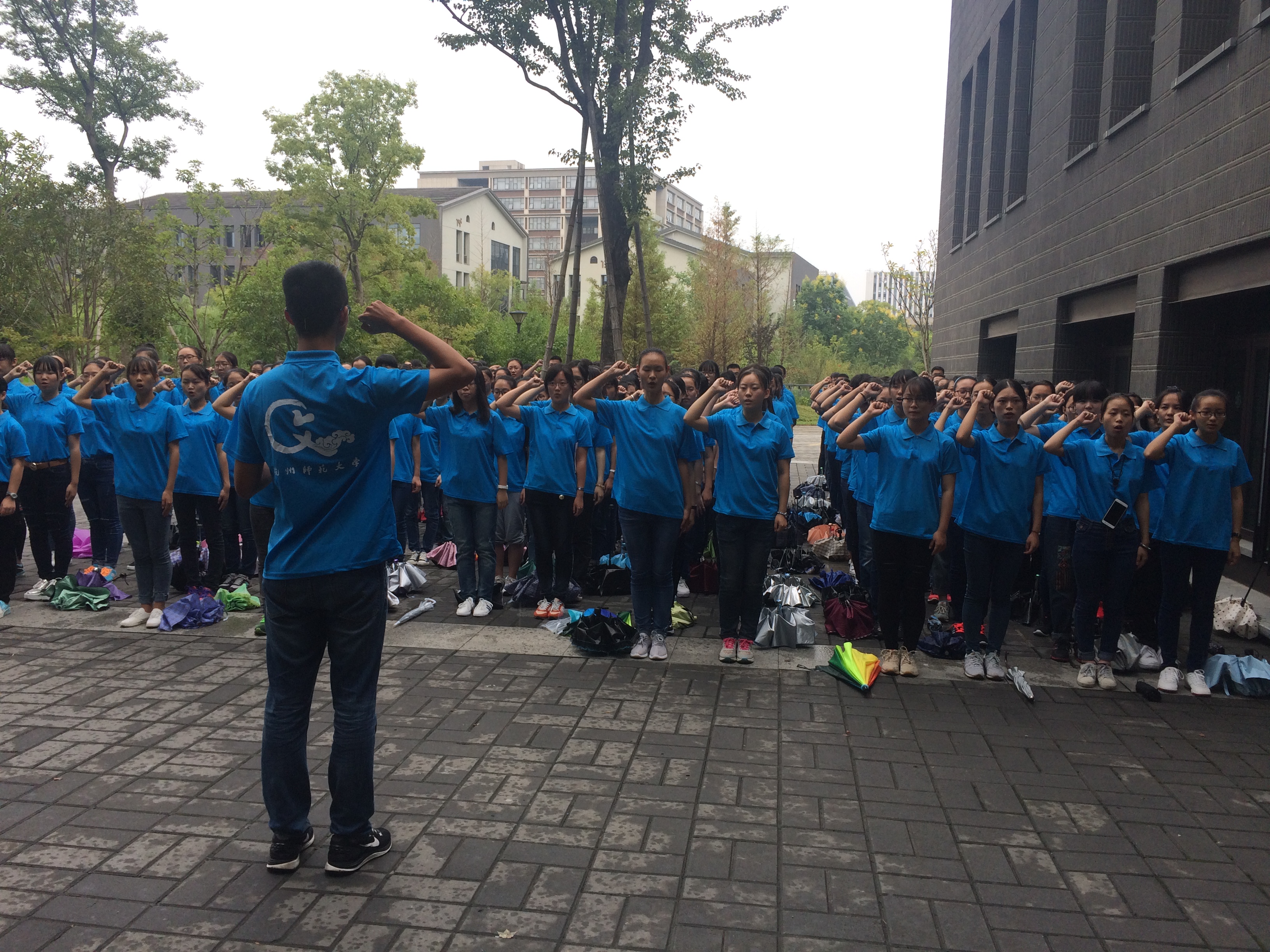 9月14日下午3点,no视频 在恕园23号楼前召开军训动员大会,2016级辅导员陈飞主持大会。