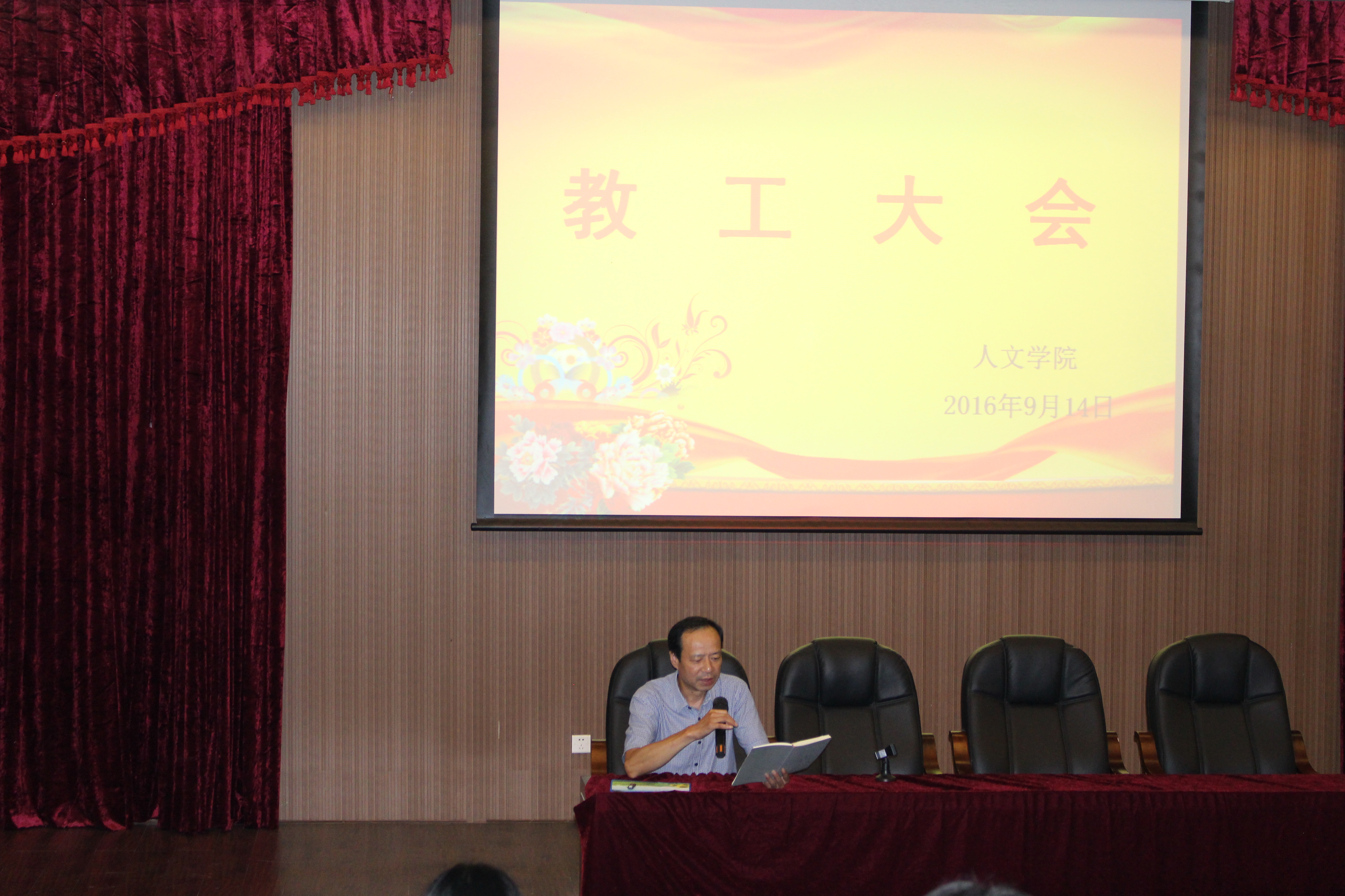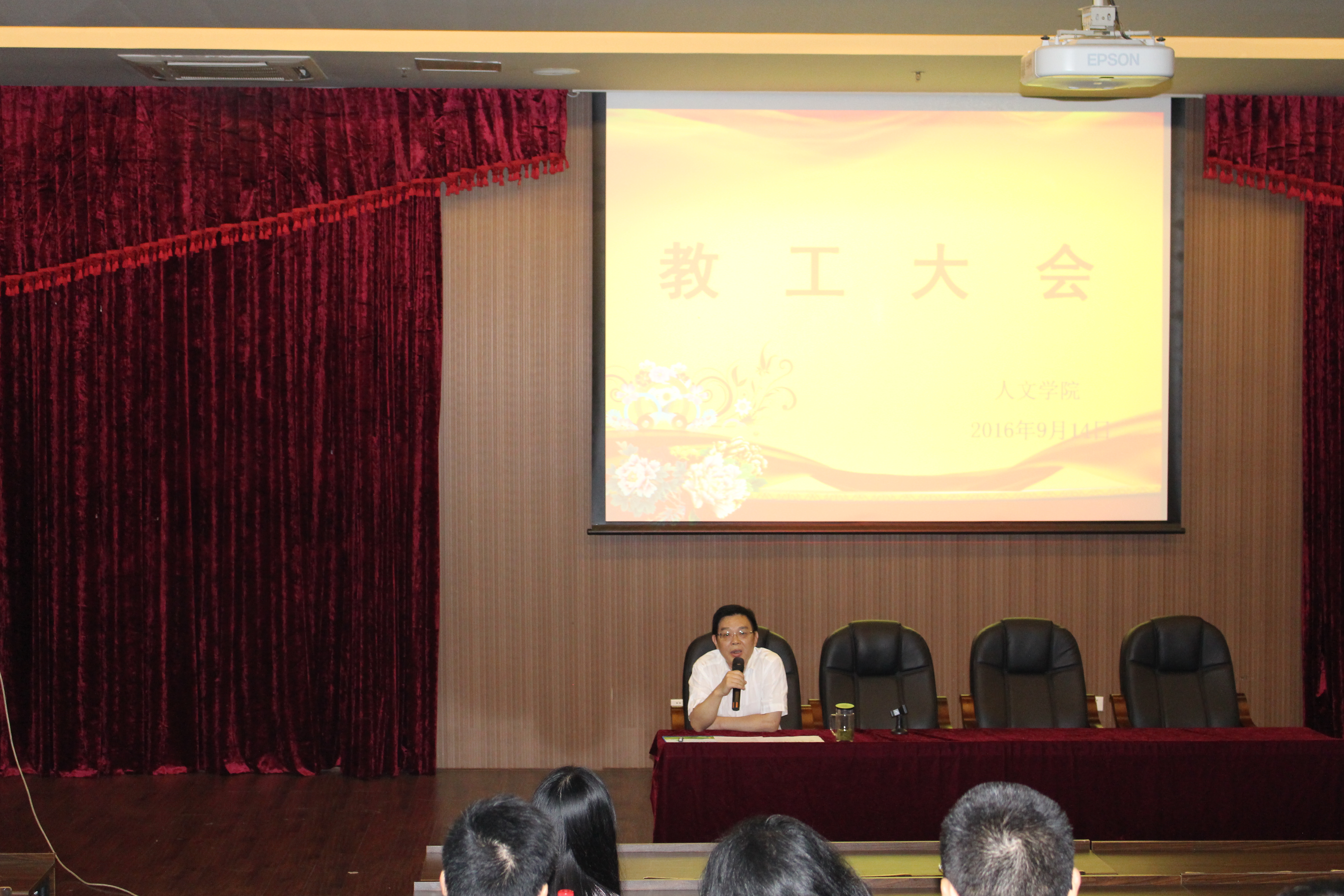 9月14下午,no视频 本学期首次全体教职工大会在23幢一楼会议厅举行。洪治纲院长等院领导重点传达了学校暑期工作会议精神,并就本学期的工作任务做了全面部署。会议由院党委书记吴兴农主持。