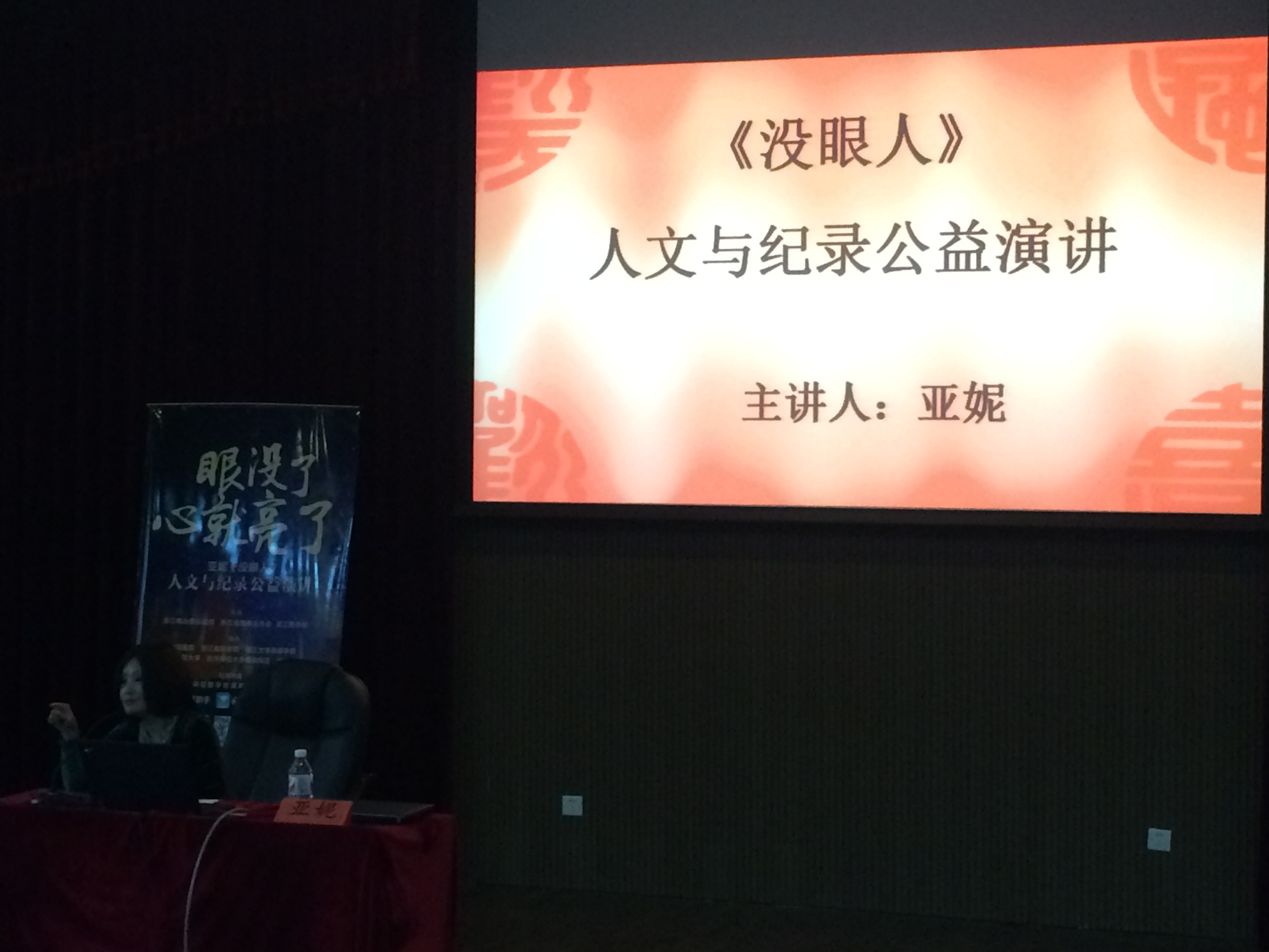 10月21日下午14点,由浙江电台音乐调频、浙江残疾人协会及浙江图书馆协会主办,no视频 承办的《没眼人》人文与纪录公益演讲之no视频 专场,在恕园23号楼弘艺厅举行。集主持、编导、制片人于一身的全能型电视节目主持人亚妮是此次公益演讲的主讲人。