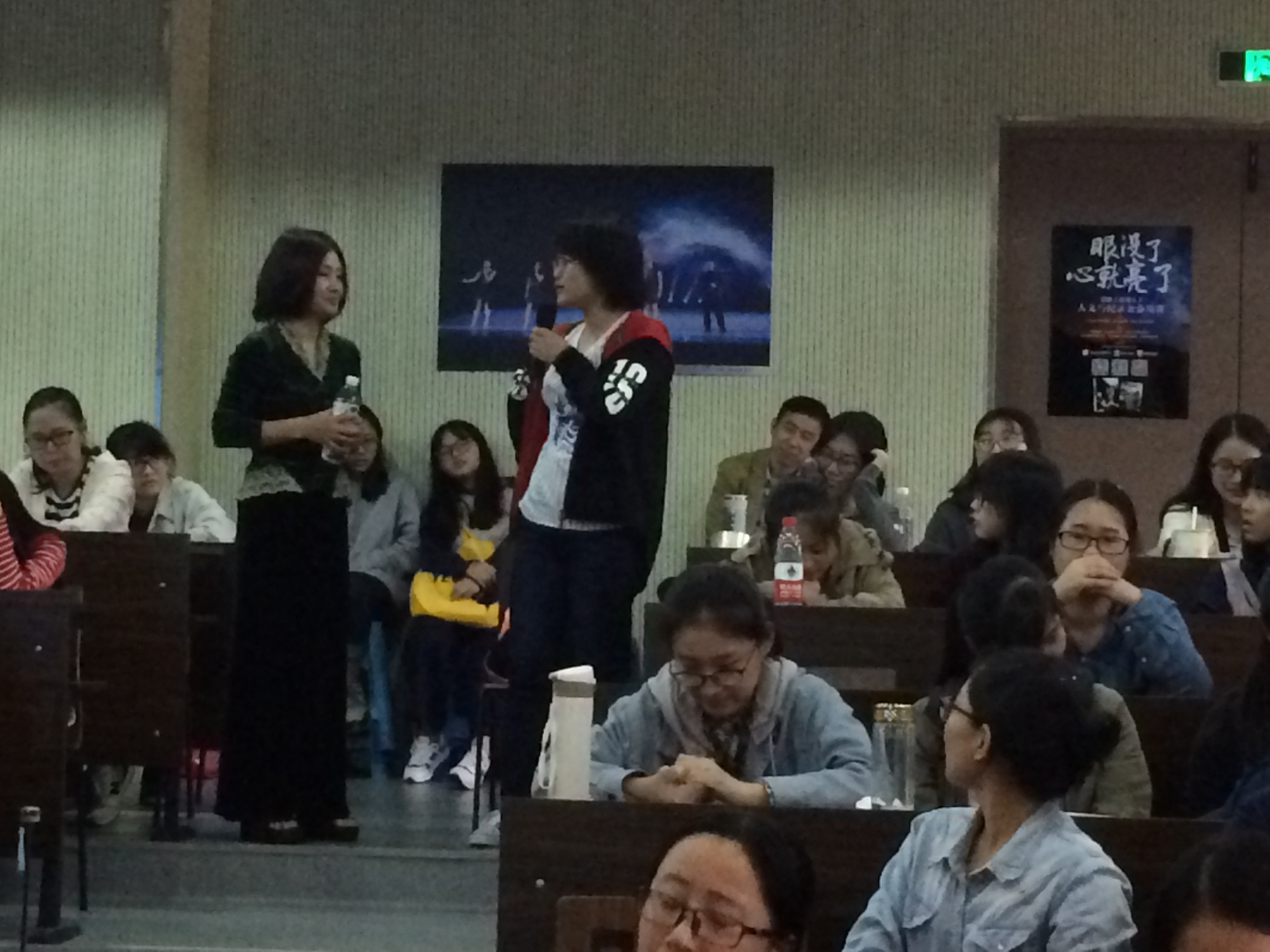 此后,亚妮老师将话题过渡到亲情在生命中的分量,向大家讲述了没眼人肉三(声译)和兄弟们走山卖唱供外甥读书的故事,让观众体会到了最明媚的心灵和最纯粹的亲情。除此之外,她还讲述了发生在没眼人中的爱情故事以及为写成苗族史诗倾尽毕生心血的伟人王安江的故事。这些故事不仅带来感动,也发人深思,同时值得每一个人细细咀嚼,久久回味。演讲进入尾声时,亚妮老师为大家播放了《没眼人》的宣传片并与全场观众进一步交流,真诚恳切地为每位提问的同学答疑。讲座后,不少现场观众因动人的故事而潸然泪下。