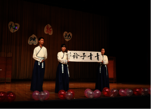 随着强劲的乐声响起,联欢会在大艺团Poppin舞队激情的开场舞中拉开了帷幕。歌舞、朗诵、话剧等精彩的节目为大家呈现了丰盛的视听盛宴。来自晨风网络文学社、博晖文史社、 麓溪书画社 、嘉礼华服社成员表演的节目《子衿》,动作优美、引人入胜,展示着东方的神韵;由流霞剧社带来的话剧《你的心里有几个名字》生动展现了我们在生活中矛盾复杂的一面,并以此鼓励大家勇敢地聆听自己的内心;诗朗诵《活在珍贵的人间》以充沛的情感唤出了我们对生命的尊重;师大奇葩说以大学生兼职为话题进行激烈而奇葩的讨论,为晚会带来了欢乐的气息;歌曲串烧以悠扬的歌声向大家传播着爱与希望;更有大一、大二、大三同学倾情表演的热舞《Cake by the ocean》、《Holiday》引燃全场。整场演出精彩不断、高潮迭起,赢得台下阵阵掌声,欢呼声一浪高过一浪。最后,一支充满爱意的手语歌、一首暖心的《爱因为在心中》将联欢会划上了圆满的句号。