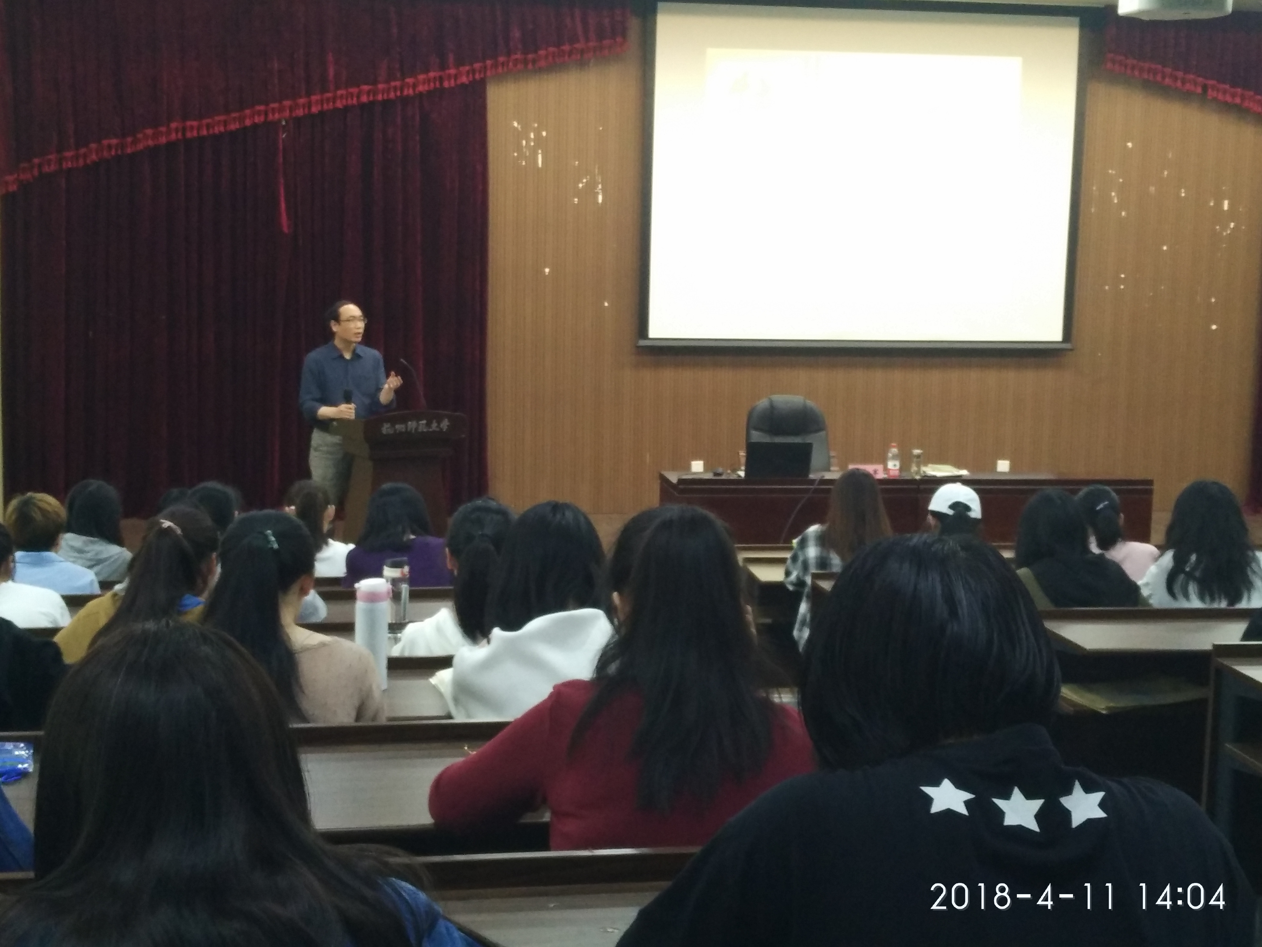 4月11日下午2点,恕园23号楼弘毅厅里,徐大军教授为广大师生带来了一场主题为“理解杜丽娘:为了反抗还是为了现实”的学术讲座。no视频 学子对讲座活动表现出了极大兴趣,现场座无虚席。学院辅导员孔祥亮出席并主持讲座。