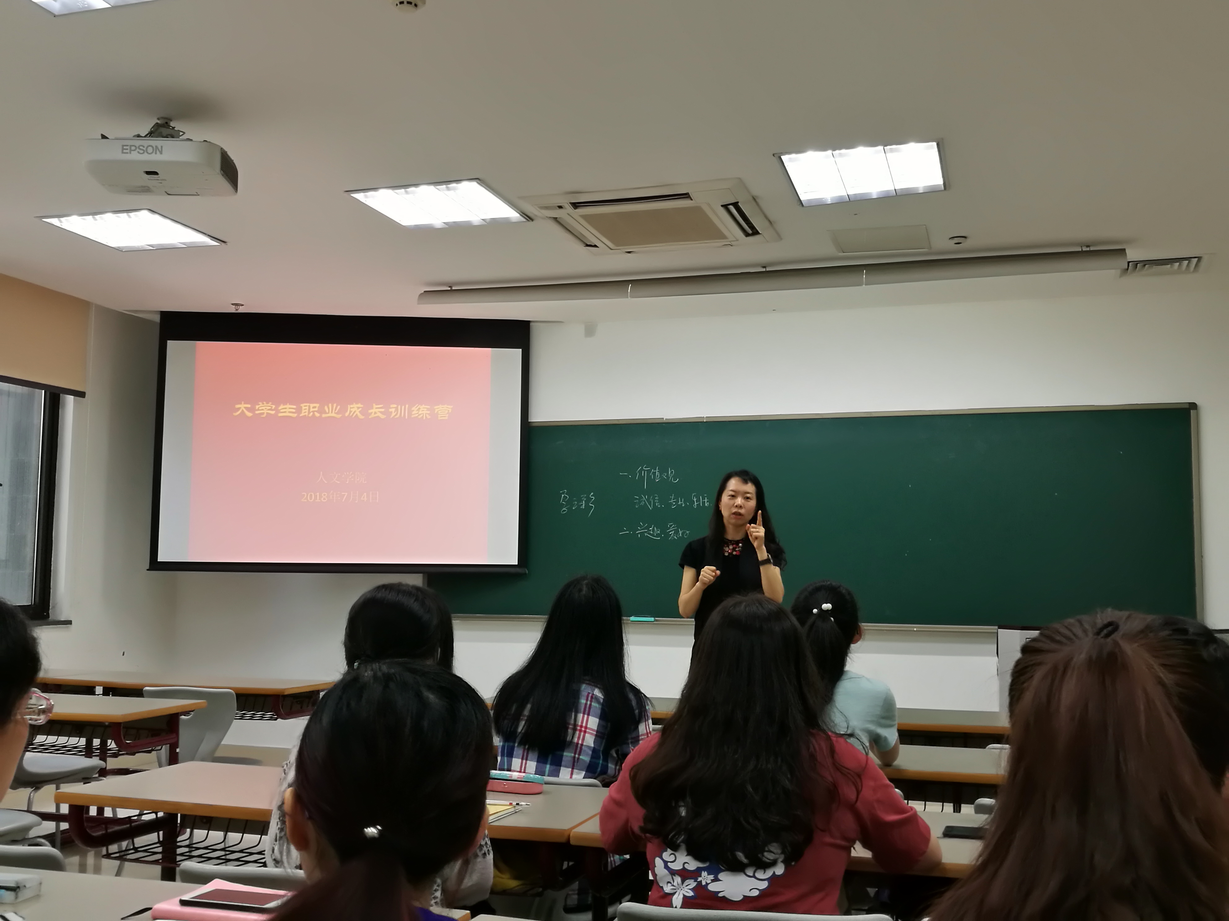 在随后的培训中,四位老师分享了自己的经历。袁筱华老师结合自身经验强调了三个关键词热情、精通、成功,提出职业成长需要持之以恒地努力,不断地练习。李莉老师结合自身的工作经历以及创业过程,强调职业生活需要了解自己,树立价值观,培养自己的兴趣爱好,强调优势、爱好与个人职业成长成才相结合。毛伟军老师则是以自身的三段传奇经历说明了职业有多种偶然性,天上不会掉馅饼,机遇面前要懂得取舍。黄骏楠结合自身成长历程用现身说法为同学们分享了宝贵的职场经验和个人感悟。