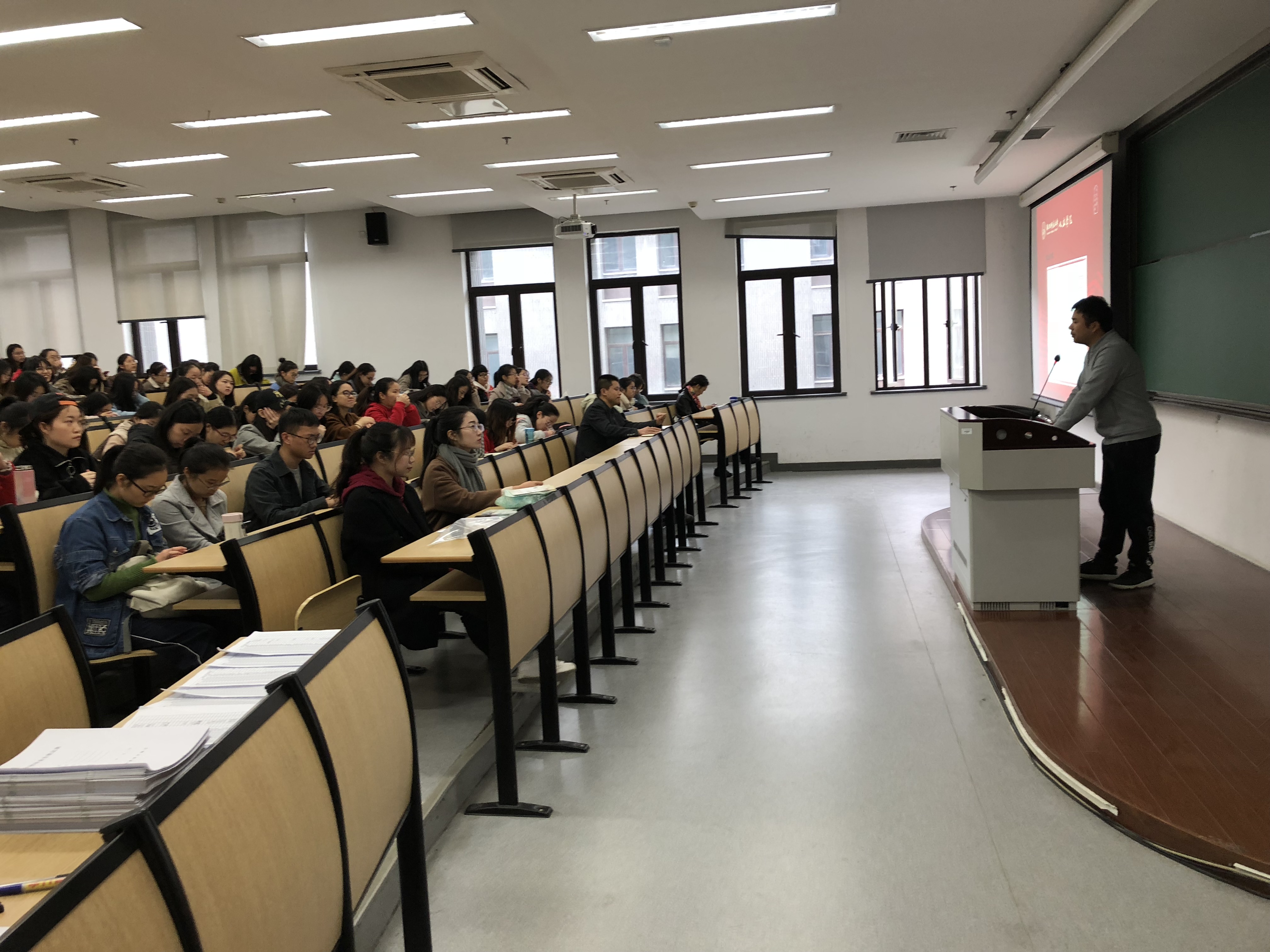 年级辅导员和学工办主任先后向2019届毕业生介绍了考研、就业的注意事项,嘱咐2019届毕业生要时刻与学院保持联系,有问题要及时联系相关的老师。管书记鼓励2019届考研学生要坚定信心,为自己拥有一个更高的平台而努力;对于就业的同学,则应积极应聘,多尝试,在不断的面试中积累相关的经验。陈院长就本科教学评估反馈的问题与毕业生展开交流,提醒毕业生在走上岗位之际更要重视自己的师德修养和建设,同时,陈院长也对毕论文写作引用规范开展了指导。