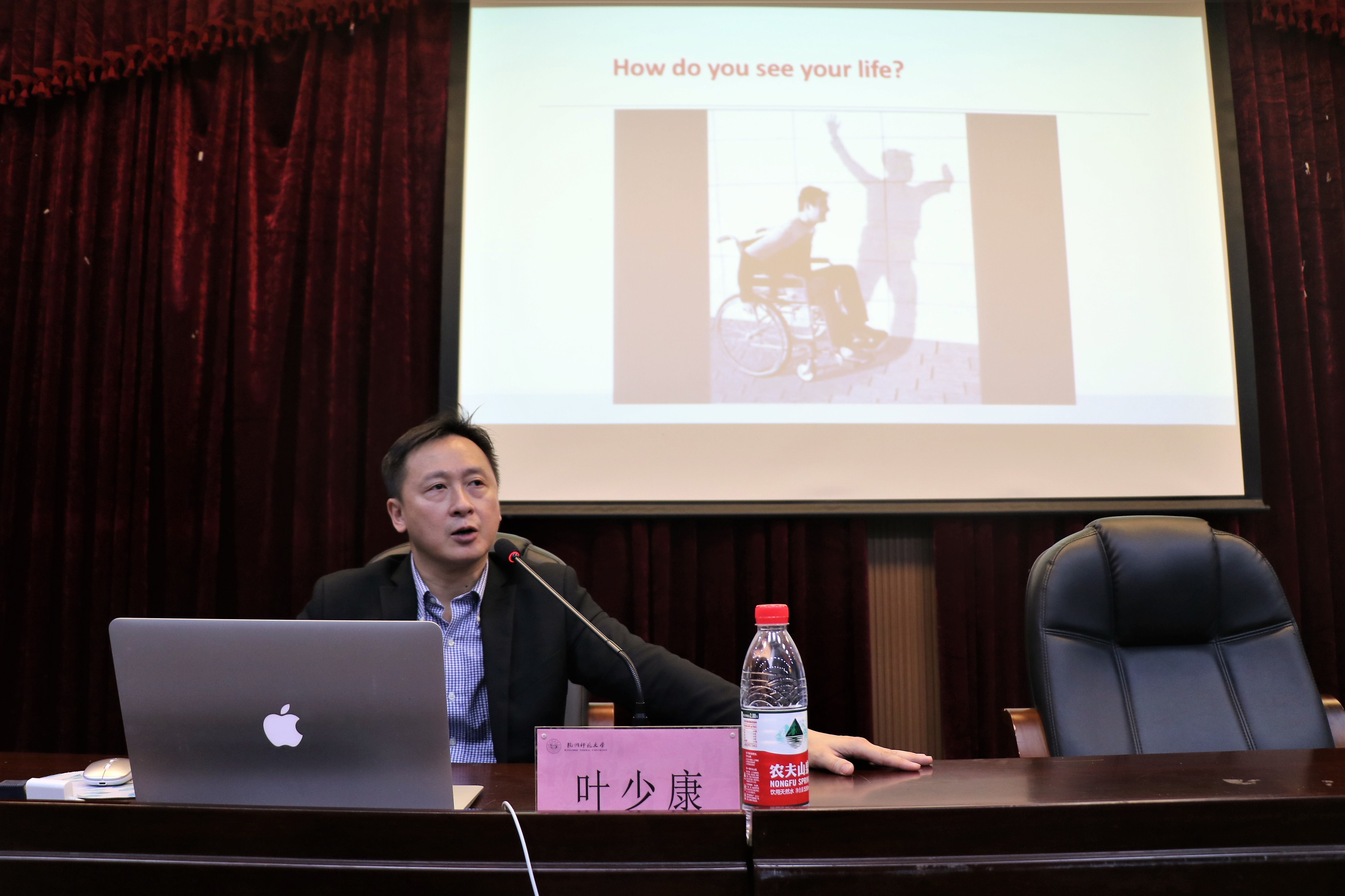 4月19日晚,北京残奥会马术选手、香港杰出企业家叶少康先生应邀来no视频 以“以梦为马,勇敢追梦”为主题作新生始业教育之青年励志讲座。讲座由no视频 党委副书记管庆江主持。2018级辅导员傅培恩和2018级新生参加。