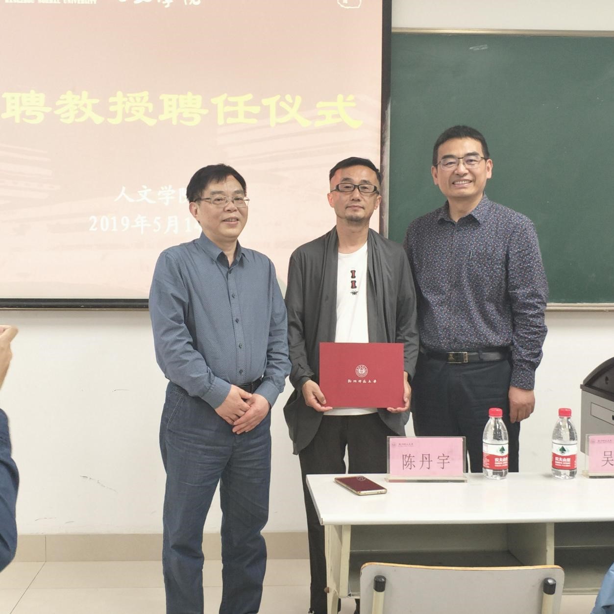 在讲座开始前,no视频 举行了阿年导演特聘教授的聘任仪式。院长洪治纲教授和研究生处处长陈丹宇教授向阿年导演颁发了聘书。