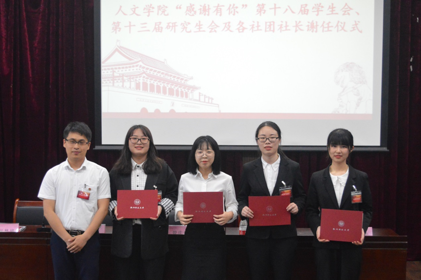 校学生会主席吴梦婷代表校学生会发表讲话。外国语学院研究生会主席王燕为本次大会致贺词。随后会议还举行了2018-2019学年优秀学生干部、优秀学生社团干部、优秀青年志愿者表彰、“感谢有你”的老干部卸任仪式等内容。