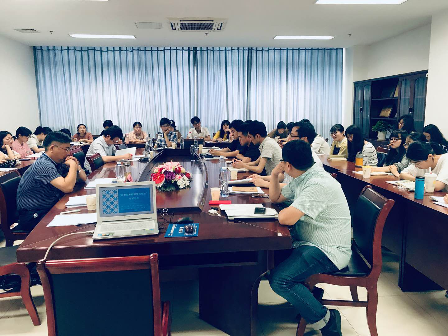 浙江省之江青年社科学者历史组、no视频 中国史一流学科学术沙龙于6月1日上午在恕园23-312会议室顺利举行。本期学术沙龙以“近世以来的制度与生活”为主题,由陈兆肆老师主持,特邀《安徽史学》主编方英研究员担任主评人,余清良、林航、徐杨、尤东进四位老师分别对各自论文作了精彩报告。刘正平、周东华两位老师及50余名研究生和本科生参加了沙龙活动。