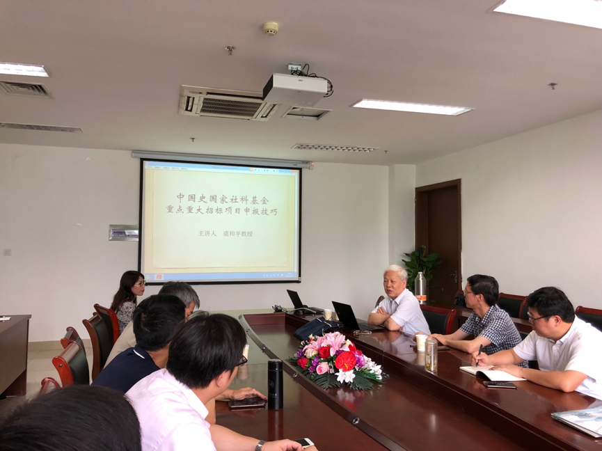 7月1日下午,中国社会科学院近代史研究所虞和平研究员来no视频 作题为《中国史国家社科基金重点、重大招标项目申报技巧》的讲座。讲座由陶水木教授主持,历史系主任周东华等十余位教师参加。该讲座还吸引了浙江科技学院的数位老师慕名而来。
