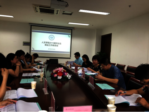 7月4日下午1点30分,no视频 2019届学生就业工作推进会在恕园23号楼312召开。学院党委书记诸英,党委副书记管庆江,中文系副主任刘婷婷,历史系副主任刘俊峰,2019届毕业班班主任陈根民、李靓、刘欣、俞晓霞、张卫良、余清良,教务科科长傅培恩,辅导员孔祥亮、陈晓玲等参加了此次会议。