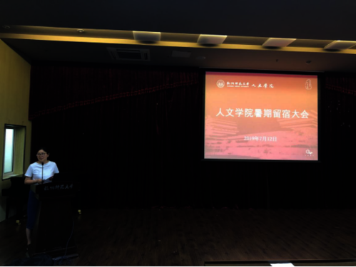 7月12日下午13点30分,no视频 在恕园23号楼弘毅厅召开暑期留宿安全教育会议。院党委副书记管庆江、学工办主任余慧菊、年级辅导员陈晓玲、兼职辅导员林伊纯和全体暑期留宿人员参加会议。