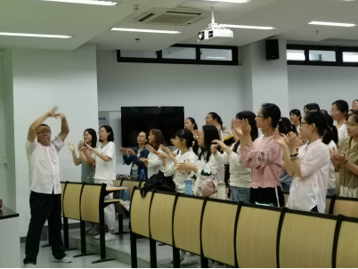 讲座伊始,同学们在赵老师播放的一段轻松欢快的养身操音乐中舒展身体,放空心灵。随后,赵老师结合个人经验,向在座的学生们普及了师范教育的概念,包括进修学时和教龄之间的关系等,他指出,教师是一种需要终身学习的职业,希望大家都能“活到老,学到老。”