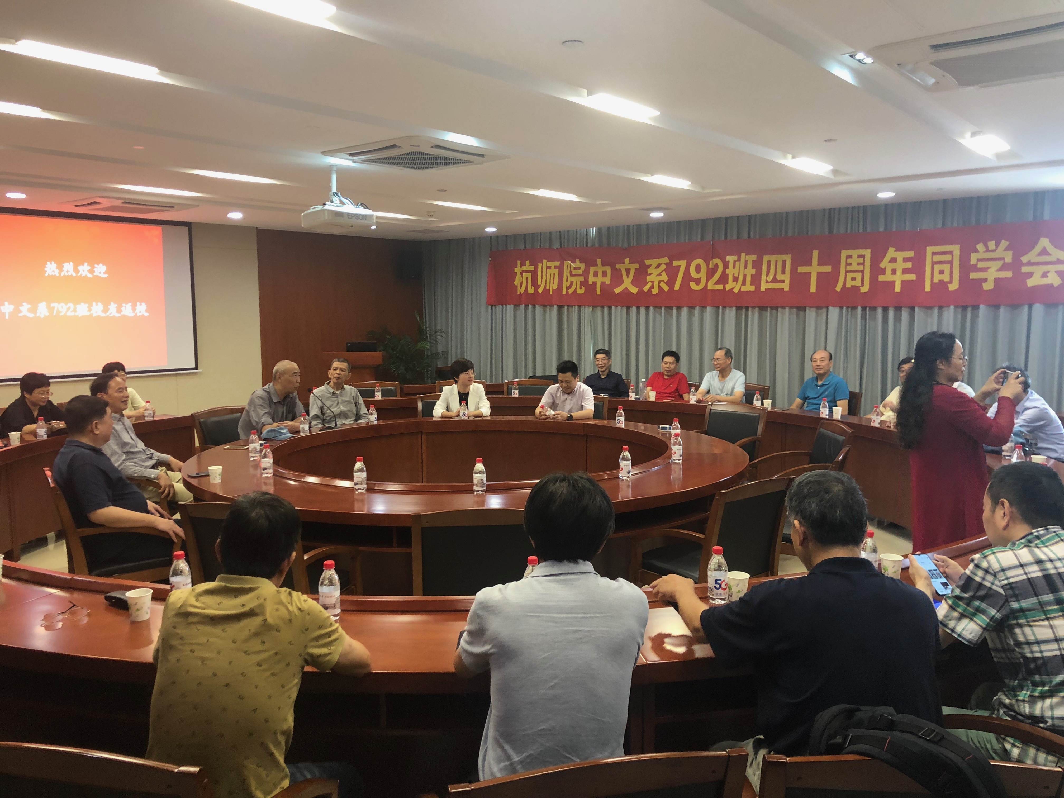 9月22日下午,中文系792班入学40周年校友返校纪念活动在仓前校区举行,中文792班近30名同学和老教师代表共聚一堂,共叙情谊。学院党委书记诸英、校友总会秘书长蔡云飞出席活动,并分别作欢迎致辞和校友工作介绍。座谈会上校友代表向学院赠送了礼物。中文792班班长朱文主持座谈会。