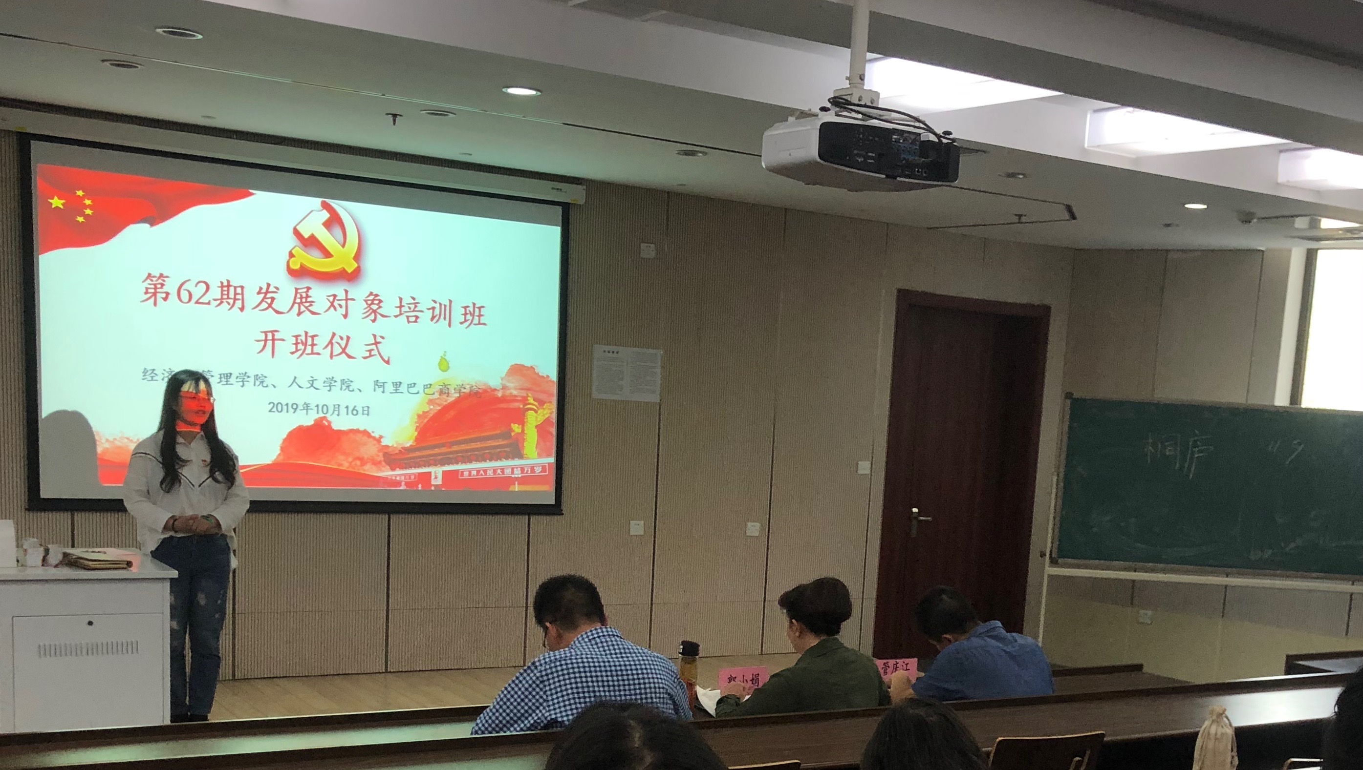 10月16日下午13:30,no视频 联合经济与管理学院、阿里巴巴商学院2019年下半年发展对象培训班开班典礼在恕园2号楼103报告厅举行,经济与管理学院党委书记郭小娟、党委副书记钟江顺以及no视频 党委副书记管庆江出席开班典礼。之后,本次联合培训班主办学院经济与管理学院党委书记郭小娟为全体培训班学员上专题党课,共同开展党章导读学习。