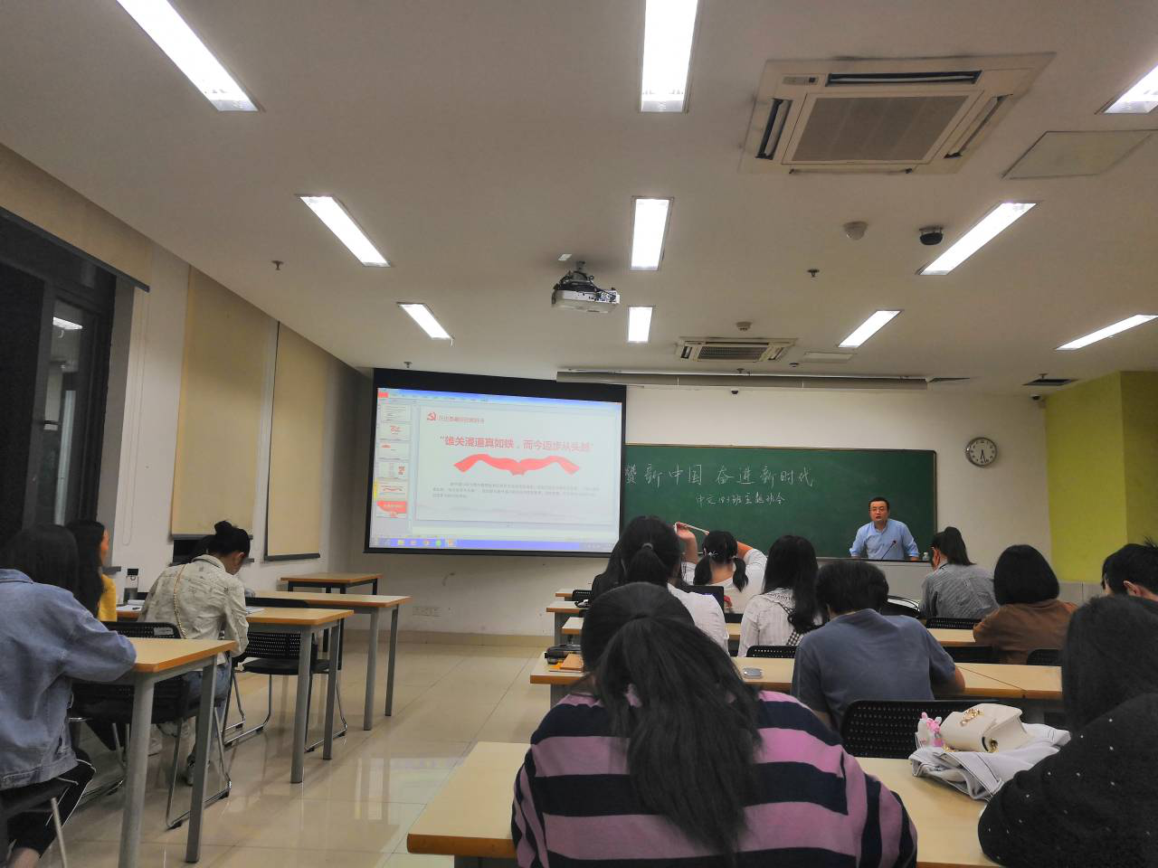 会议中,班主任刘杨老师进行了总结发言,提到我们应该做到为自己负责,为自己的学习负责。刘杨老师的发言发人深省,提醒了全体同学作为新中国的青年,应当脚踏实地,不断奋进,不负韶华。
