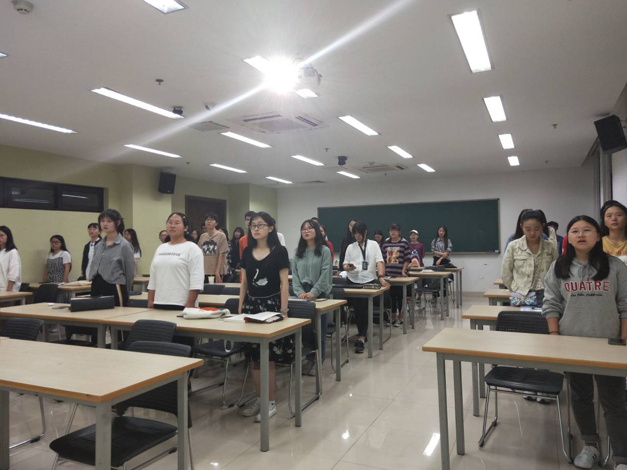 最后,中文183全体同学起立合唱国歌与共青团团歌,恢弘铿锵的旋律不仅在教室中响起,更在每一位同学的心中响起。