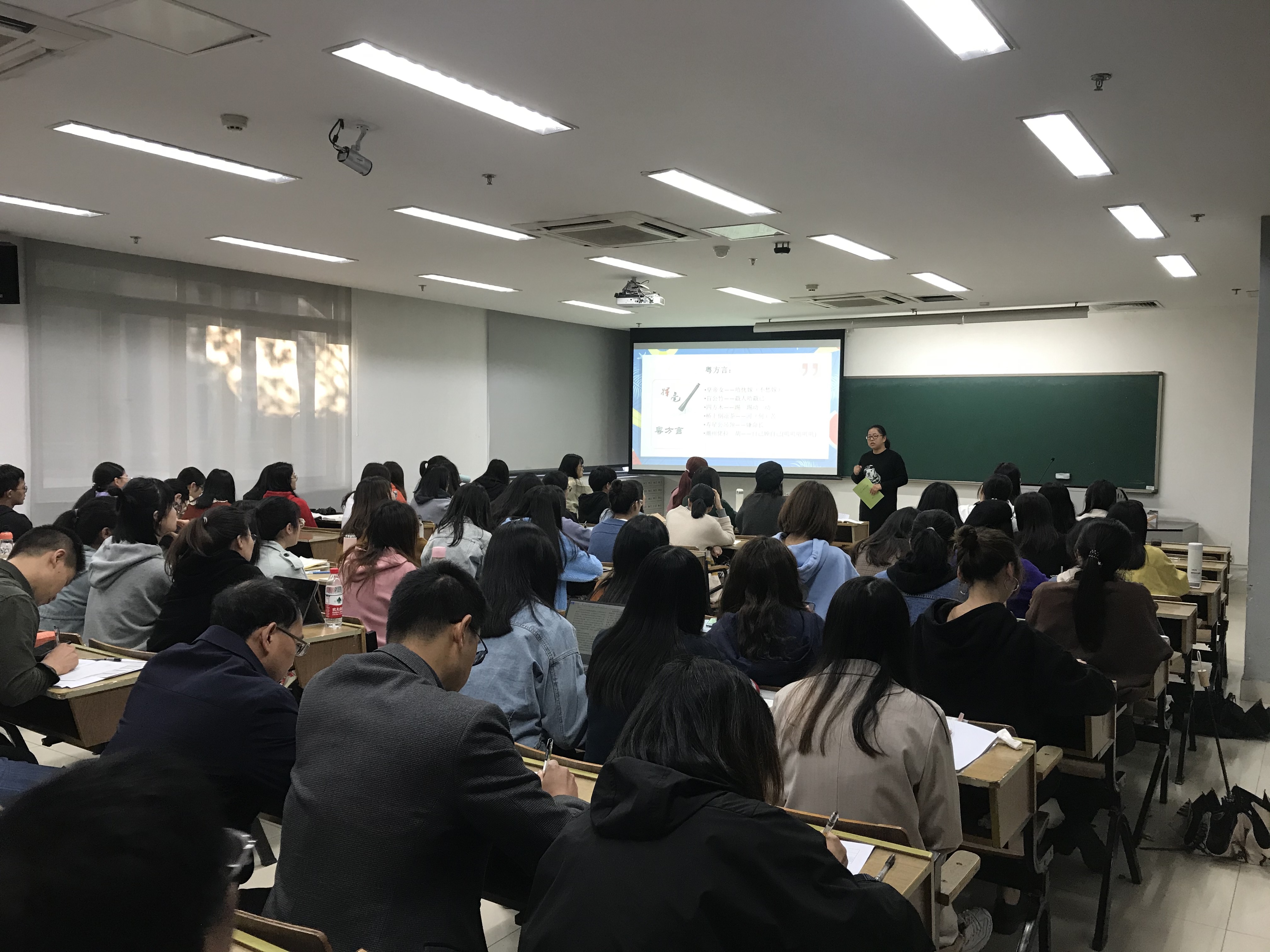 此次张薇的《方言与中国文化》课程是作为课堂教学改革项目进行展示,也是本学期教学质量月中的一个重要环节,目的是为了更好的落实课堂教学改革,贯彻专业认证理念,真正提高本科教学质量。(图/文 傅培恩)