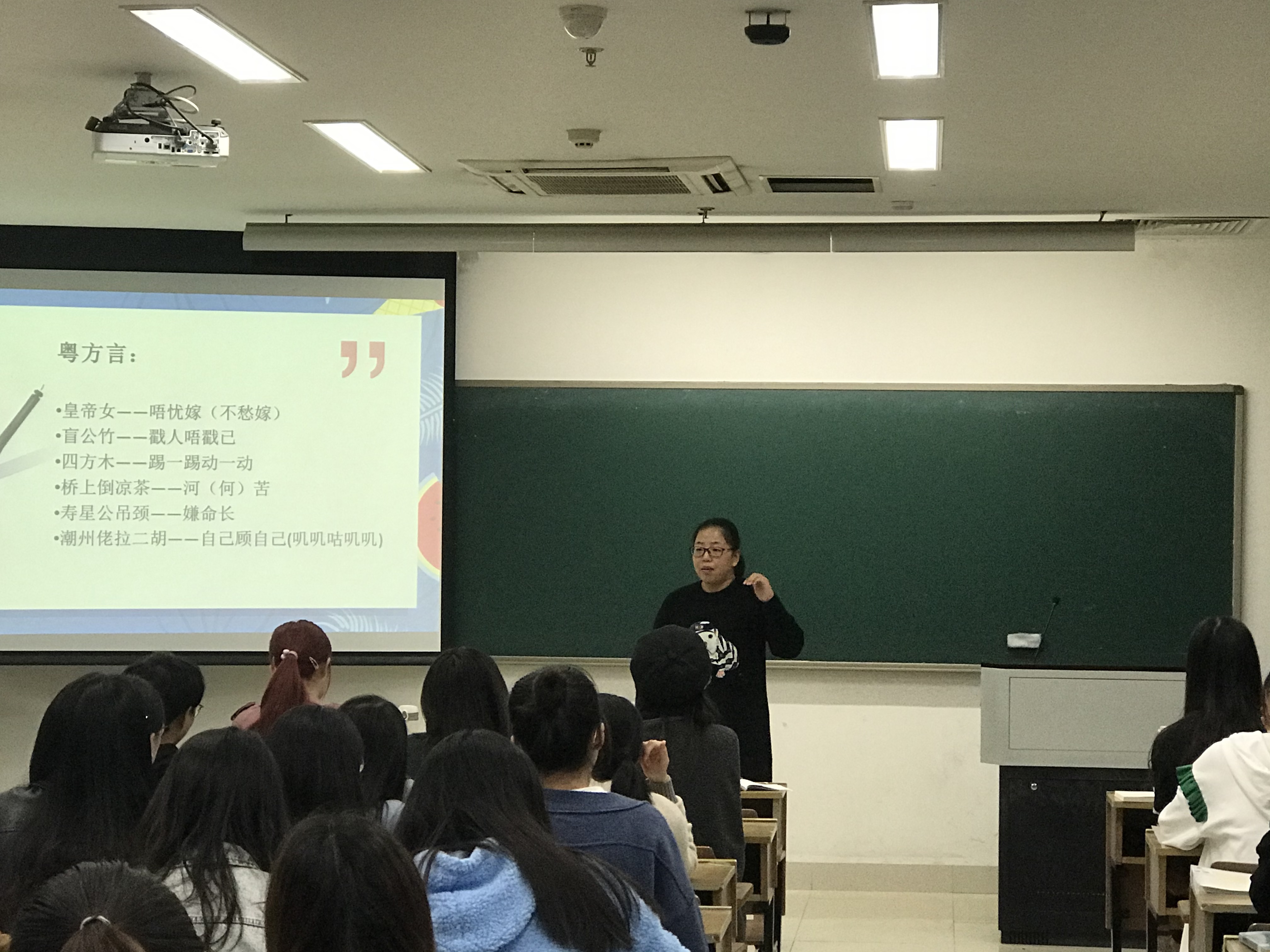 11月6日早上8点05分,no视频 中文系教师张薇的公开课《方言与中国文化》准时在12号楼105教室开始。校党委副书记王利琳、学工部部长何军、no视频 院长洪治纲、党委书记诸英、副院长陈兆肆、副书记管庆江,会同语言学教研室的部分教师一起,观摩了张薇老师的课程教学。