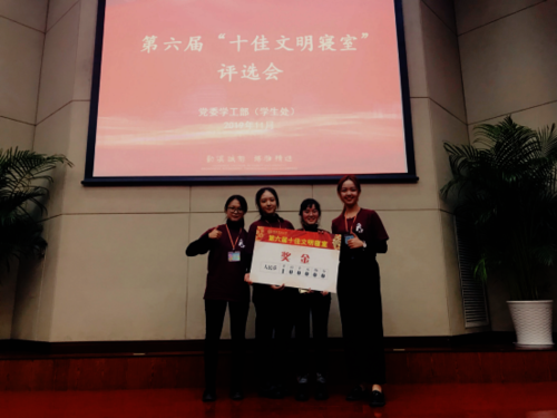 11月28日晚,no视频 第六届 “十佳文明寝室”的评选活动在恕园七号楼200座落下帷幕,no视频 博文苑4-203寝室(成员为中文172陈麟、曹艳艳、陈思羽和陈思思四位同学)代表no视频 参加校“十佳文明寝室”评比,并荣获校“十佳”的称号。