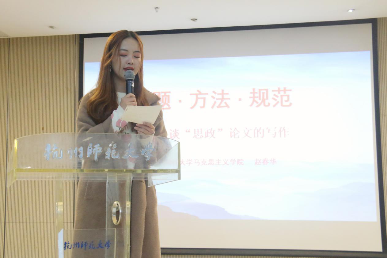 12月18日下午,马克思主义学院赵春华教授在恕园2号楼112教室应邀为no视频 学子作题为“选题·方法·规范”的思政论文写作辅导讲座。no视频 18级全体同学及院学生会全体干部参加此次讲座,讲座由院学生会主席陈麟主持。