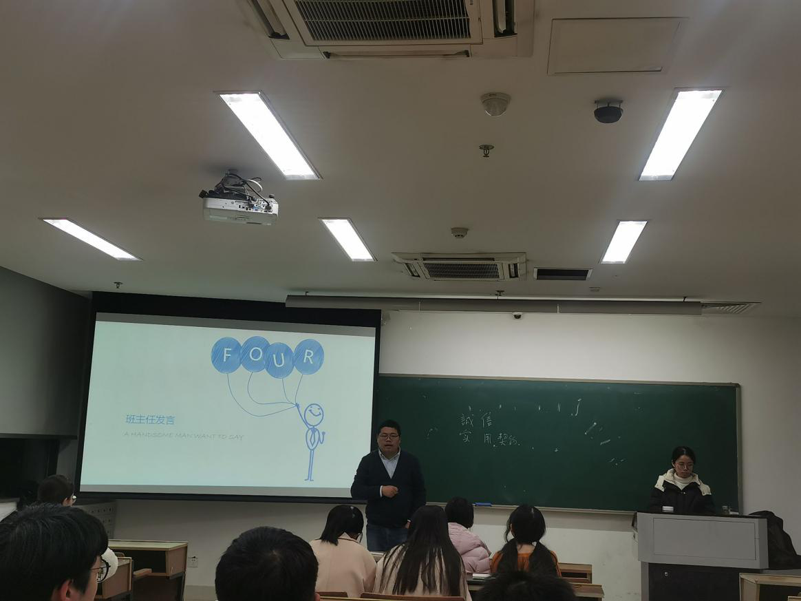 12月16日晚七点半,历史191班在恕园12号楼105教室顺利开展了以“诚信考试”为主题的班会活动。班主任周东华老师出席本次班会活动,历史191班同学全部到场。