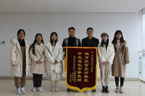 12月26日下午,贵州省从江县谷坪乡高武村第一书记刘伟男来到我校参观交流,并为no视频 赠送锦旗,以感谢no视频 赴黔东南贵州山区银滩小学支教小分队在当地开展的支教活动。院党委副书记管庆江接待了刘伟男一行,并进行了亲切的会谈。支教小分队代表也到场参与座谈。