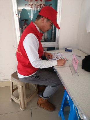 诚信考场党员服务先锋服务岗共设立10个服务点,覆盖25个诚信考场。在考试期间,每个服务点都由一名学生党员值岗。值岗同学都穿着红色小马甲,佩戴小红帽于显眼处值班,争取在老师同学需要时能够第一时间提供服务。而值岗同学的常规工作就是协助监考老师进行粘贴考场标识和考生名单、并巡视考场等,同时,服务岗处也准备了黑色水笔、橡皮、胶带等考试用品,确保考试的顺利进行。目前所有的考试已经结束,据值岗的学生党员反映的情况来看,在考试过程中,同学们牢记考风考纪,严格遵守考试制度,无不良行为。尤其是在无监考人员的诚信考场中,同学们文明答题,诚信应考,在公平公正公开的竞争平台中自我检验,用实际行动营造了优良的学风、考风,展现了人文学子良好的考场风采。