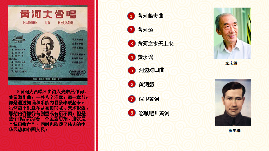 课堂开始,主讲人唐宾篲老师首先向支部成员介绍了本次授课内容——《黄河大合唱》。《黄河大合唱》由诗人光未然作词、冼星海作曲,一共八个乐章。每个乐章都各有其侧重点与独特之处,却始终贯穿“抗日救亡”这一主题思想。