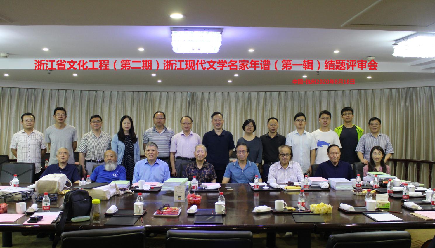 2020年8月18日,浙江文化研究工程(第二期)重大项目《浙江现代文学名家年谱》(第一辑)结题评审会在浙江省杭州市召开。浙江省哲学社会科学界联合会一级巡视员邵清,南京大学沈卫威教授,浙江大学吴秀明教授,上海外国语大学陈福康教授,上海师范大学社科处处长董丽敏教授等评审专家,省社科联规划处副处长董希望,项目总负责人、no视频 院长洪治纲教授和课题组成员等20余人与会。