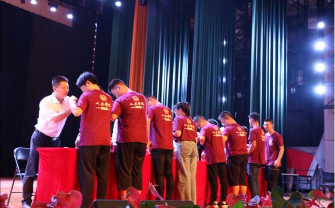 在受聘仪式上,院领导为新生班主任和新生辅导员颁发聘书。学院领导班子和老师随后为新生代表佩戴了校徽。