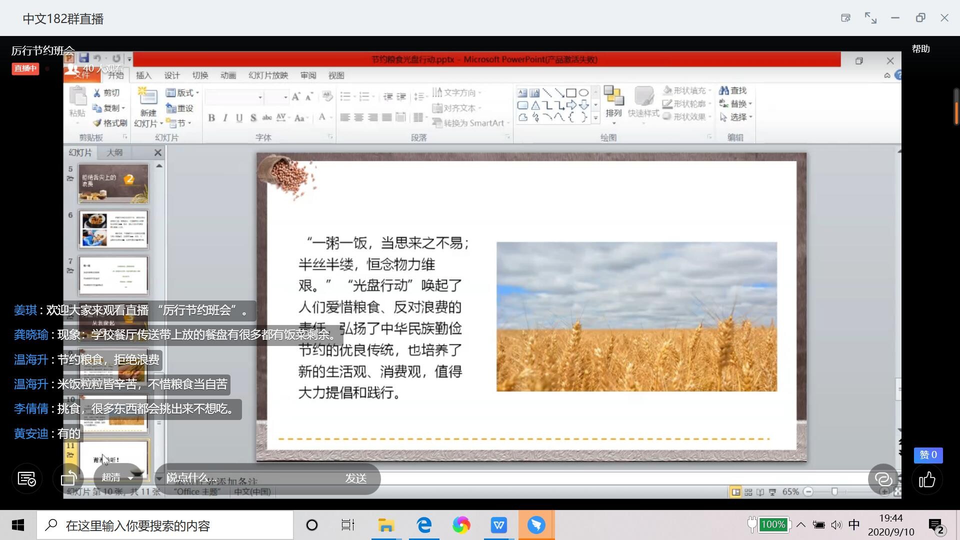 勤俭节约是中华民族的传统美德,学生返校后,为进一步贯彻落厉行节俭、反对浪费的重要指示,no视频 积极响应校学工部号召,组织各班级于9月中下旬开展“光盘·美德·新时尚”主题班会。9月15日晚6时,2020级各班在恕园22号楼教室召开新生“启航”班会暨“光盘行动”主题班会。此外,各班级紧扣弘扬勤俭节约美德的主题,创新班会形式,呈现出一场场形式丰富新颖且富有教育意义的主题班会活动,全院师生在热烈讨论中上好“开学第一课”,庄严承诺以自觉行动践行“光盘”倡议。