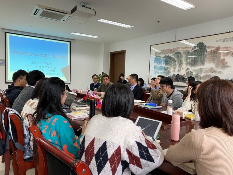 在互动环节,黄道炫教授和师生一起就史料与阐释、史学与文学关系等问题展开讨论和和回应。讲座气氛活跃,思想碰撞激烈,相信对加深师生们对叙事史学、抗战叙事史学的理解大有助益。