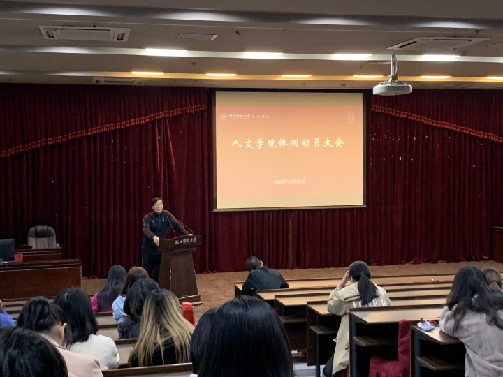 10月28日下午4时,no视频 2018级学生体测动员大会在恕园23号楼弘毅厅举行,来自汉教181、人教181、历史181和中文181班的130位参加2020年浙江省高校学生体质健康状况抽测的学生参加会议,院党委副书记管庆江、公体部主任黄忠兴、学院辅导员余慧菊、陈晓玲等出席会议。