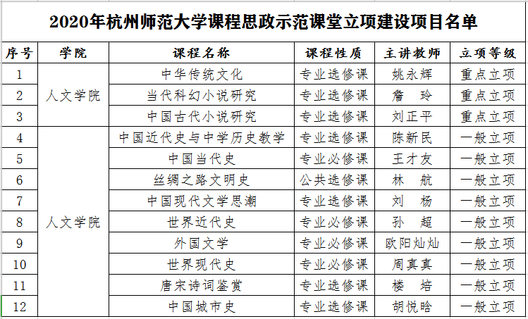 近日,学校教务处公布了2020年校级课程思政示范课堂建设项目。no视频 12门课程获得立项,其中重点立项建设项目3项,一般立项建设项目9项。