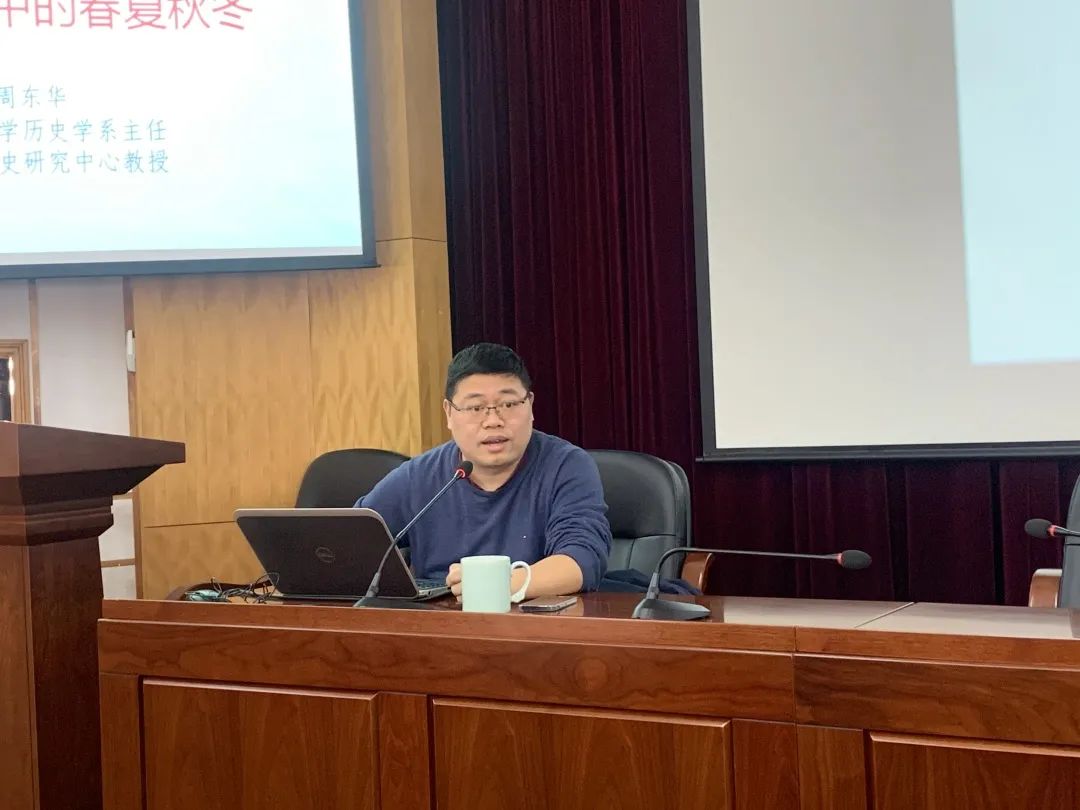 最后,会议邀请到了no视频 历史学系系主任、北京大学历史学博士周华东教授进行党史授课,课程以《百年党史中的春夏秋冬》为题,周教授深入浅出,论证丰富,内容全面,形象生动地讲述了中国共产党百年奋斗历程。与会同志聆听报告后纷纷表示很受教育、很受启发、很受感动。