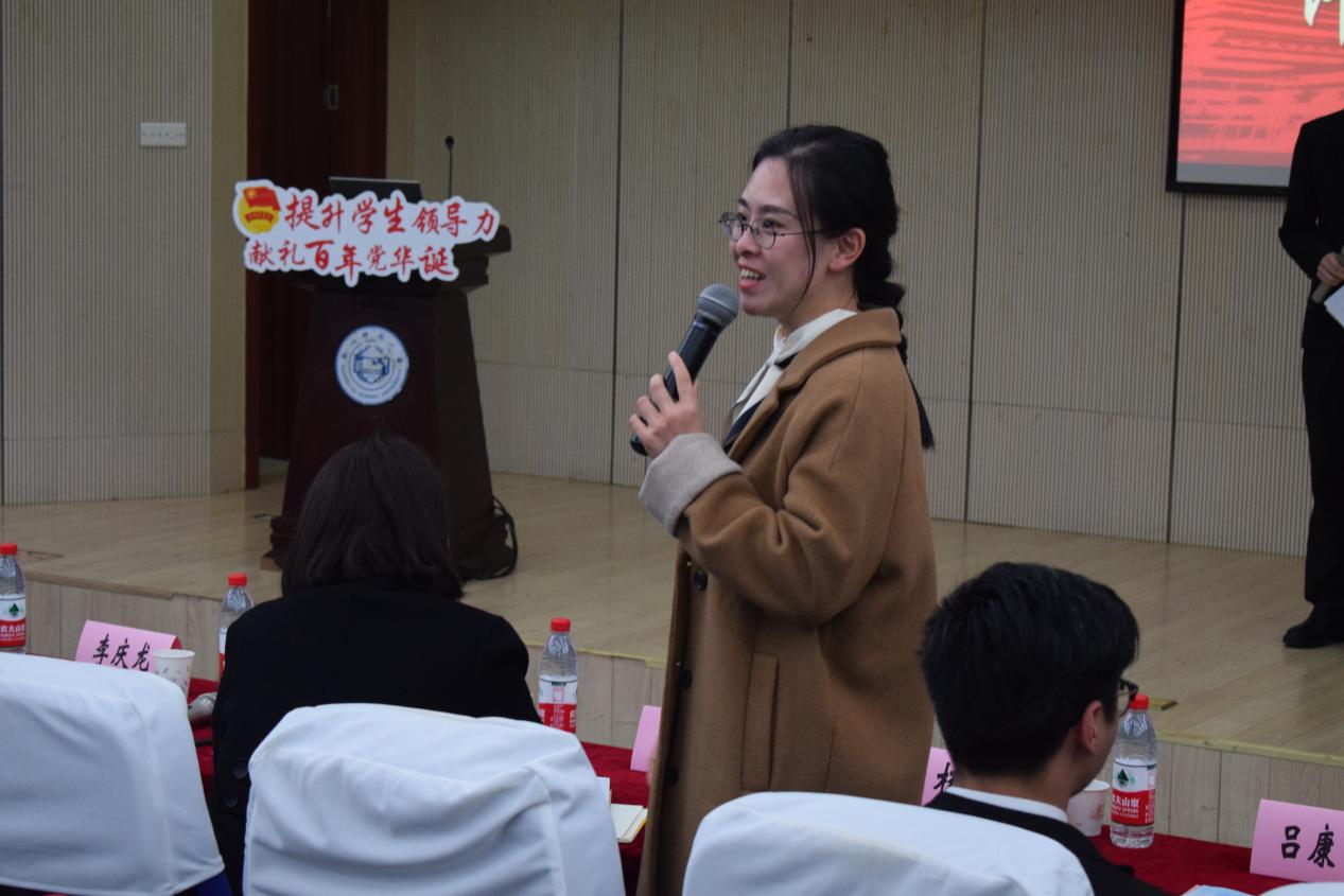 最后,管庆江感谢嘉宾评委对学生工作的大力支持,充分肯定了学院学生组织的工作成效,提出了对各组织的期望:第一,各学生干部要强化政治意识,增强斗争本领。善于从政治上分析问题,不断提高政治判断力、政治领悟力、政治执行力;第二,各组织要增强团队建设。要树立大局意识,增强合作;要树立愿景目标,共同奋斗;要增强奉献意识,换位思考;要不忘“服务师生、锻炼自我”的初心使命;第三,各位学生干部要善于规划时间,合理安排学习与工作,更好地服务于校院师生和校院发展。
