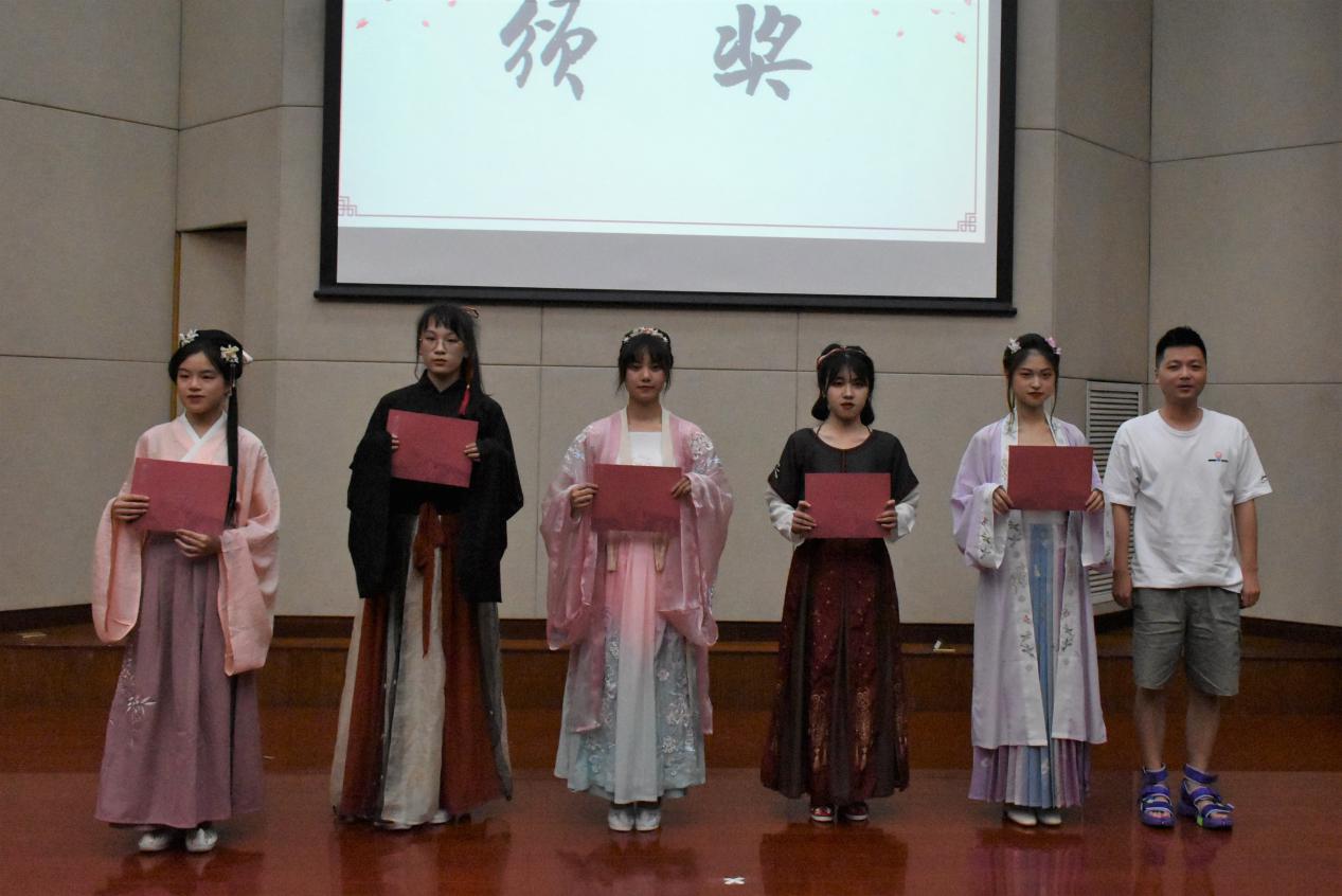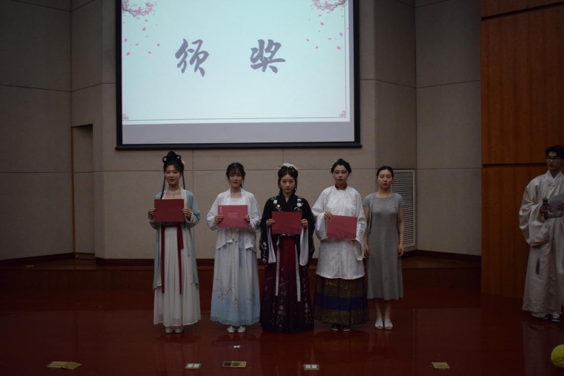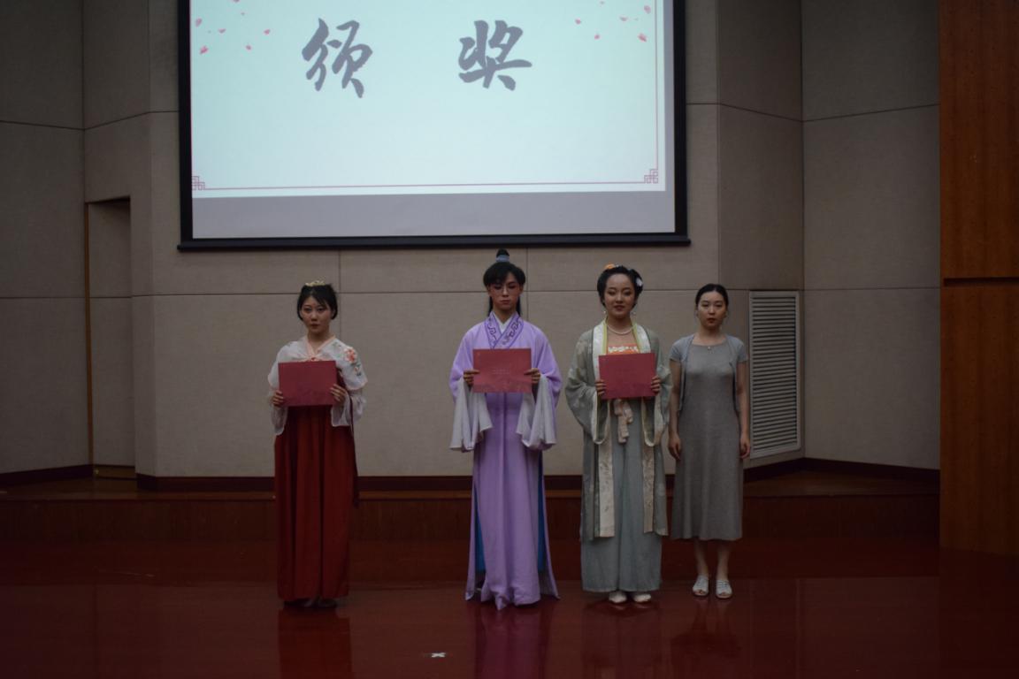 三轮评比过后,两位评委对选手们妆容、表情、动作节奏以及表演形式等进行了细致的点评,表达了热切的期盼以及对此次汉服节的赞许。比赛结束后评选出了一二三等奖,其中一等奖的三位同学晋级到了省赛,将进一步参加省级比赛的角逐。