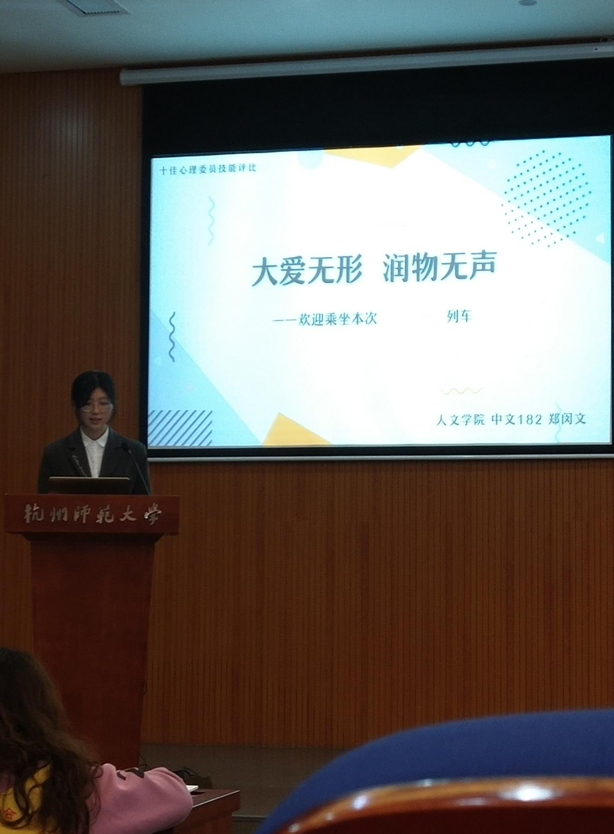 本次比赛自4月上旬启动以来,历经初赛、复赛的选拔环节,no视频 四位心理委员表现优秀,进入校十佳决赛环节。在决赛现场,十八位优秀的参赛选手展示了自己过去工作的成果,描绘了自己未来工作的蓝图,毫不怯场,赢得了评委老师的认可和现场观众的肯定。