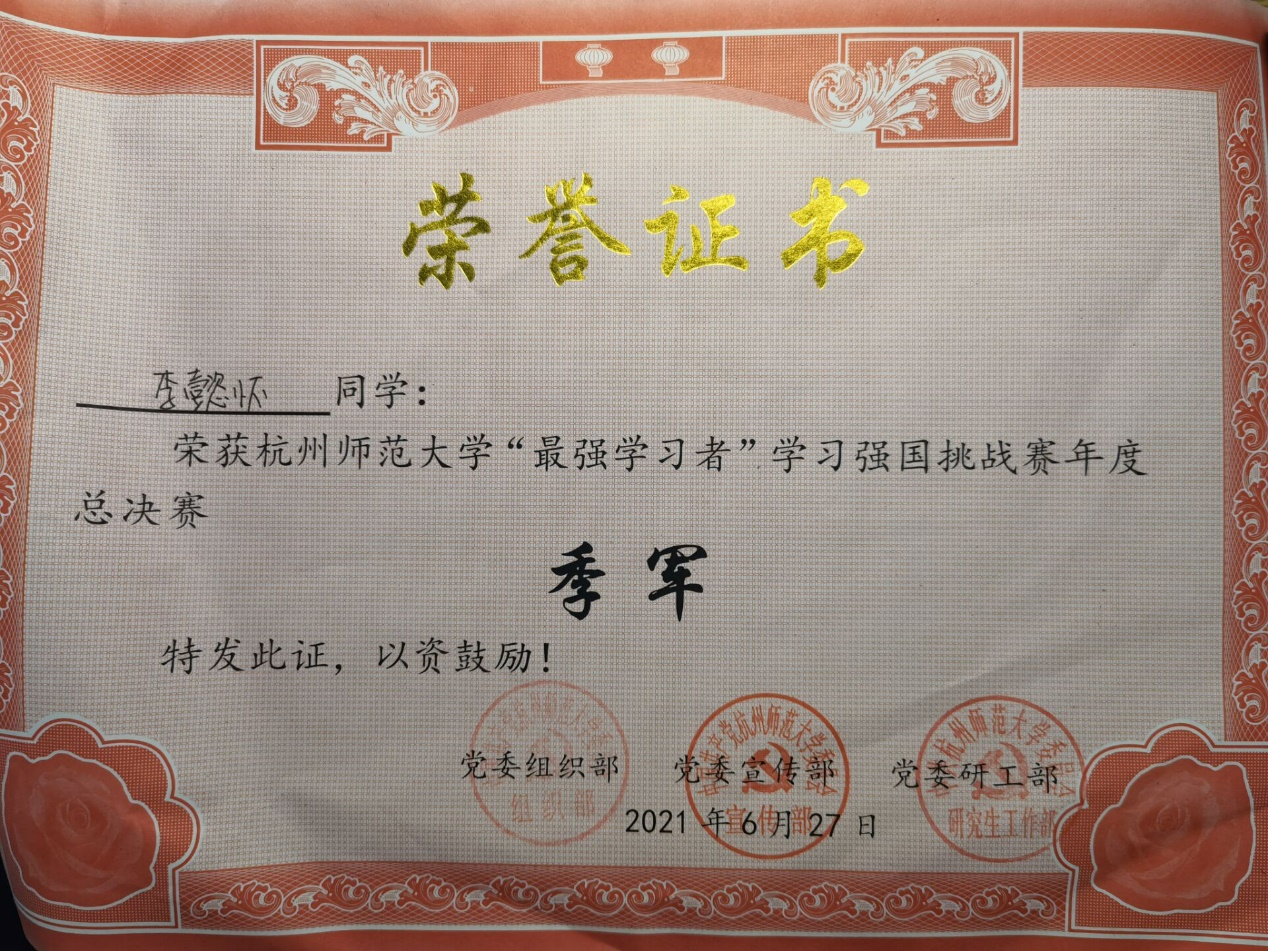 李懿怀在校“最强学习者”学习强国挑战赛年度总决赛中获佳绩